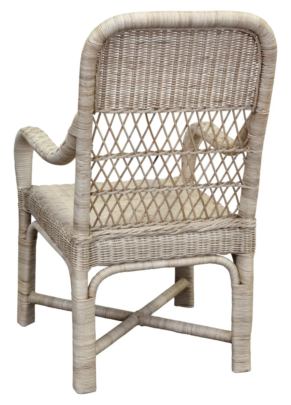 Mainly Baskets Home is dedicated to crafts made of rattan and the ancient and beloved process of weaving known as wicker. Inspired by antique and vintage designs, as well as talented collaborators and skilled artisans, these pieces share a sense of both quality and timelessness. Developed with interior designer Sarah Bartholomew, the Tisbury Dining Arm Chair is set apart by its stunning woven detailing. Choose from an array of classic colors. An optional cushion is available in a versatile Sunbrella fabric.