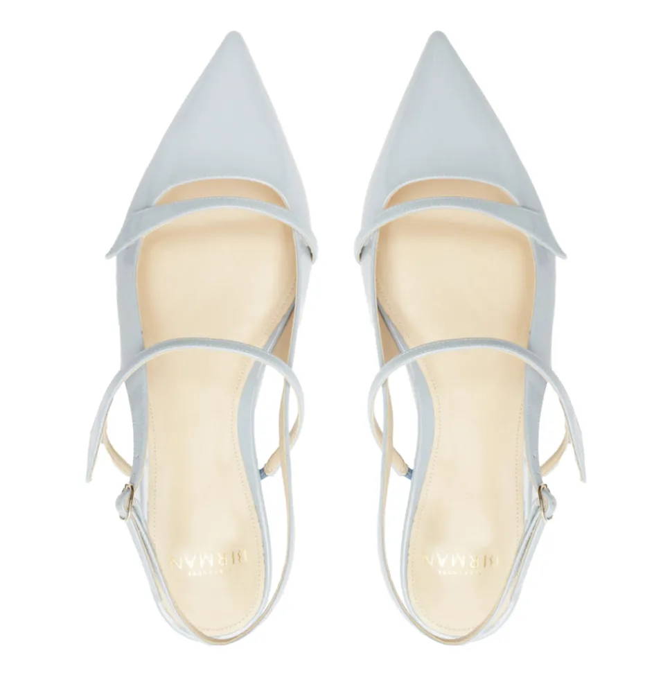 Founded in 2008, Alexandre Birman infuses each of his fine footwear collections with the spirit, sensuality and sophistication of his Brazilian heritage. Beginning with thoughtful drawings, exceptional craftsmanship is the brand’s cornerstone, employing fine artisans, superior materials, and thoughtful design to create timeless, luxurious shoes, style after style. An ideal transitional shoe, the Tita Flat in Azzuro features classic elements of the brand’s ever popular Clarita shape infused with timeless details like a slingback and pointed toe.