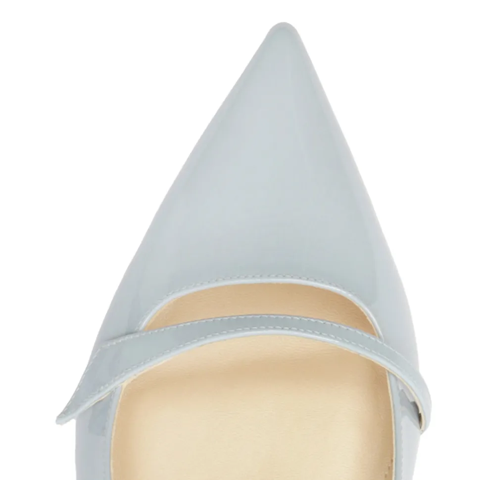 Material: vernice. Leather sole. Pointed toe. Heel height: 0.6″