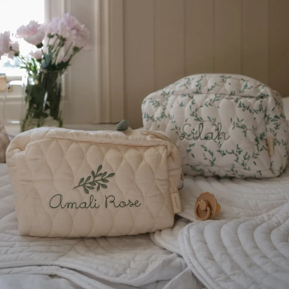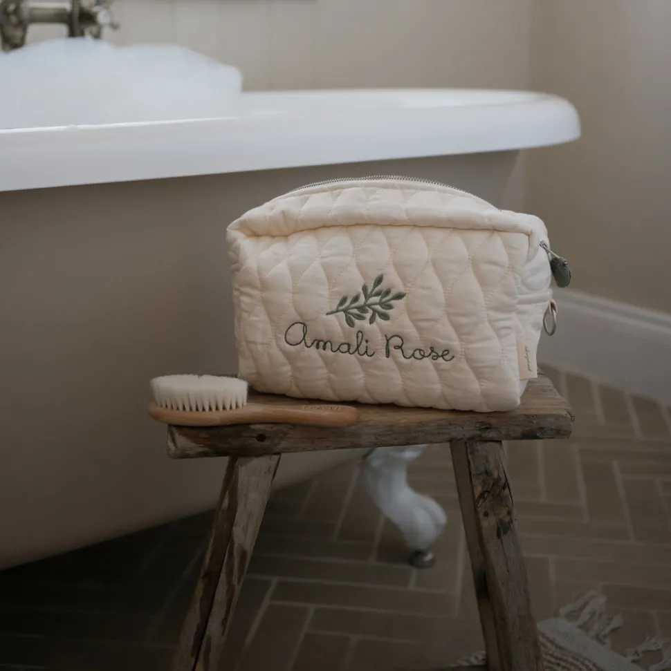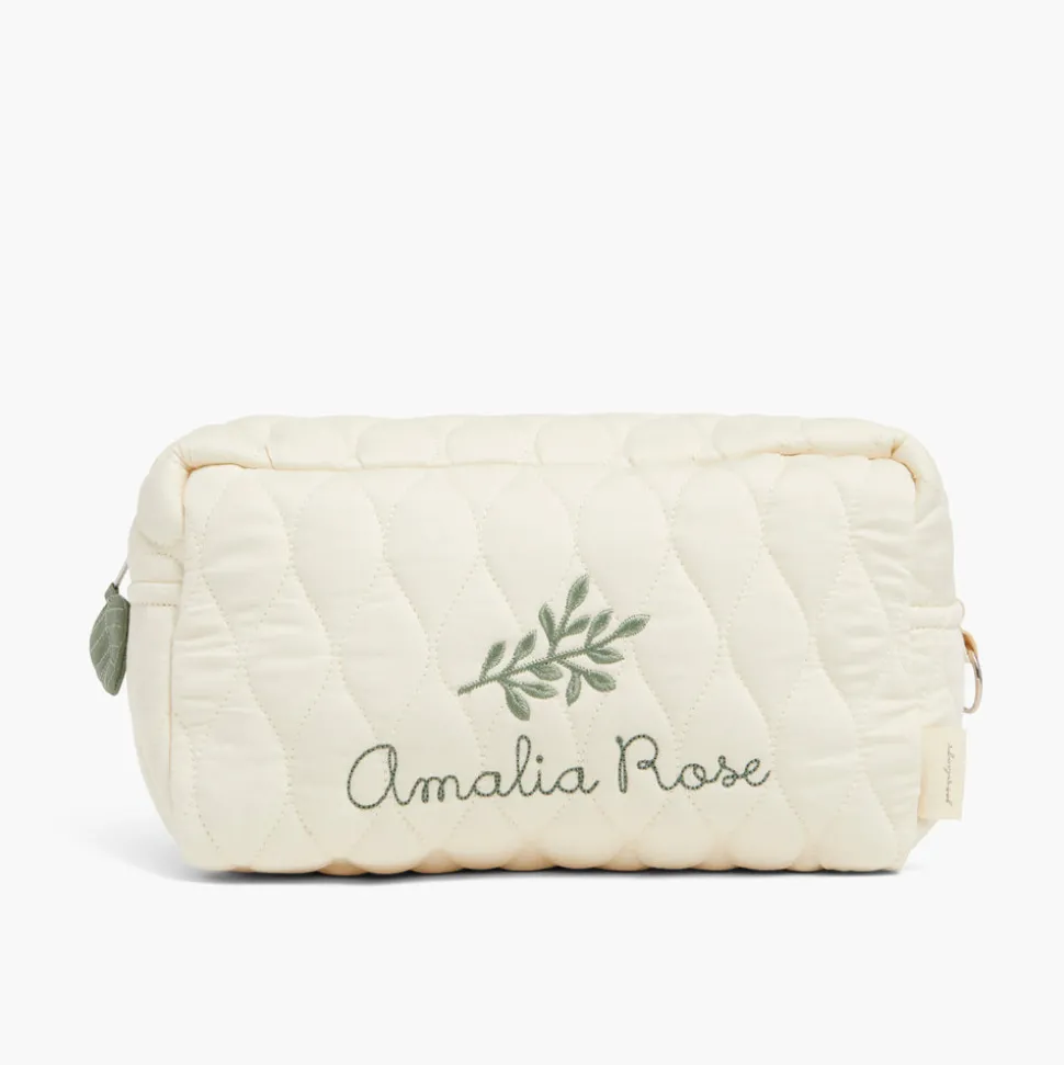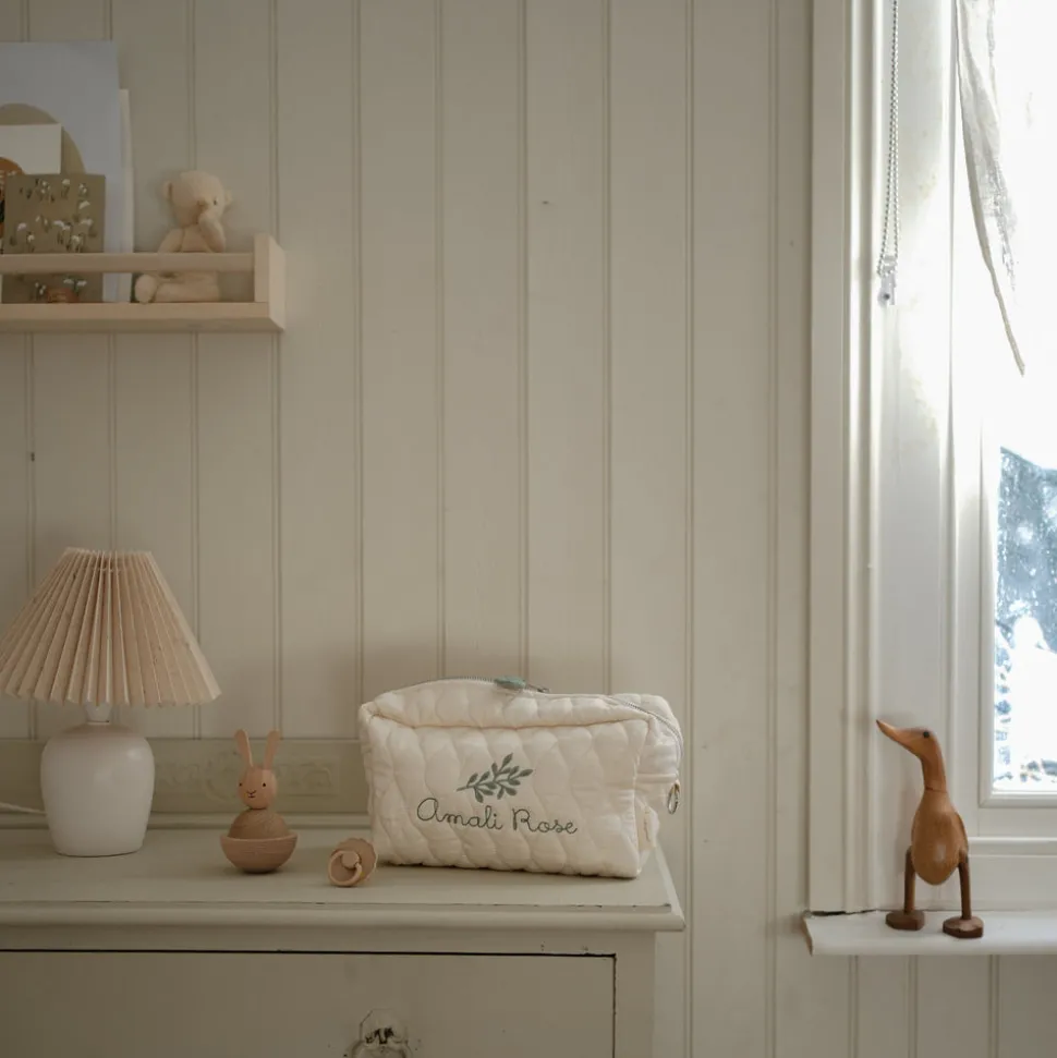 Inspired by Hygge—a Scandinavian concept that emphasizes the innate contentment arising from a cozy and comfortable atmosphere—Gooselings offers serene essentials for children and babies that bring stylish serenity to any space they touch. Expertly designed and crafted in Europe, the durably Toiletry Pouch in Ivory is specially designed for adventures with your little ones. Its intended organization keeps essentials tidy, making self-care hassle-free for both parents and young explorers on-the-go. Monogram is available on one size, limited to 15 characters.