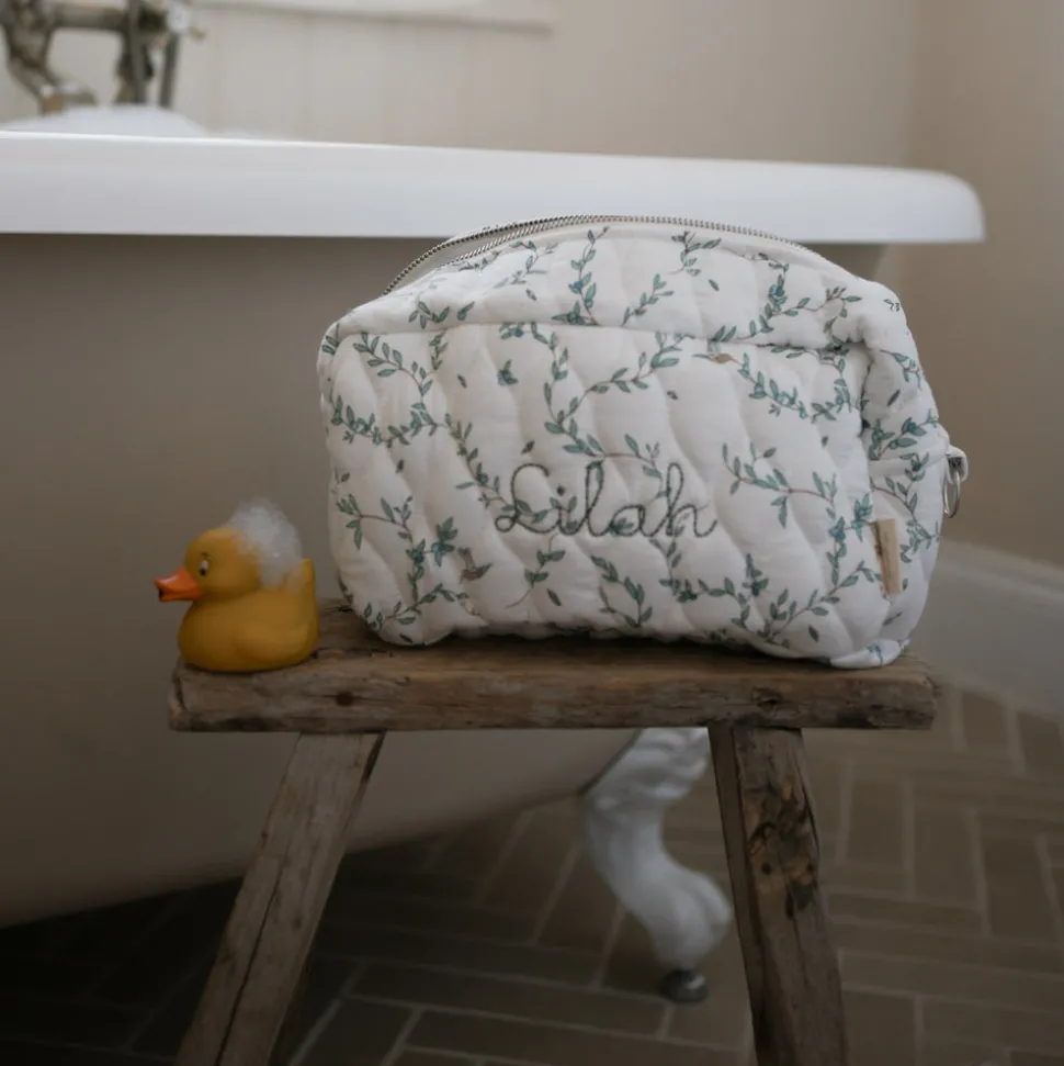 Inspired by Hygge—a Scandinavian concept that emphasizes the innate contentment arising from a cozy and comfortable atmosphere—Gooselings offers serene essentials for children and babies that bring stylish serenity to any space they touch. Expertly designed and crafted in Europe, the durably Toiletry Pouch in Secret Garden is specially designed for adventures with your little ones. Its intended organization keeps essentials tidy, making self-care hassle-free for both parents and young explorers on-the-go. Monogram is available on one size, limited to 15 characters.