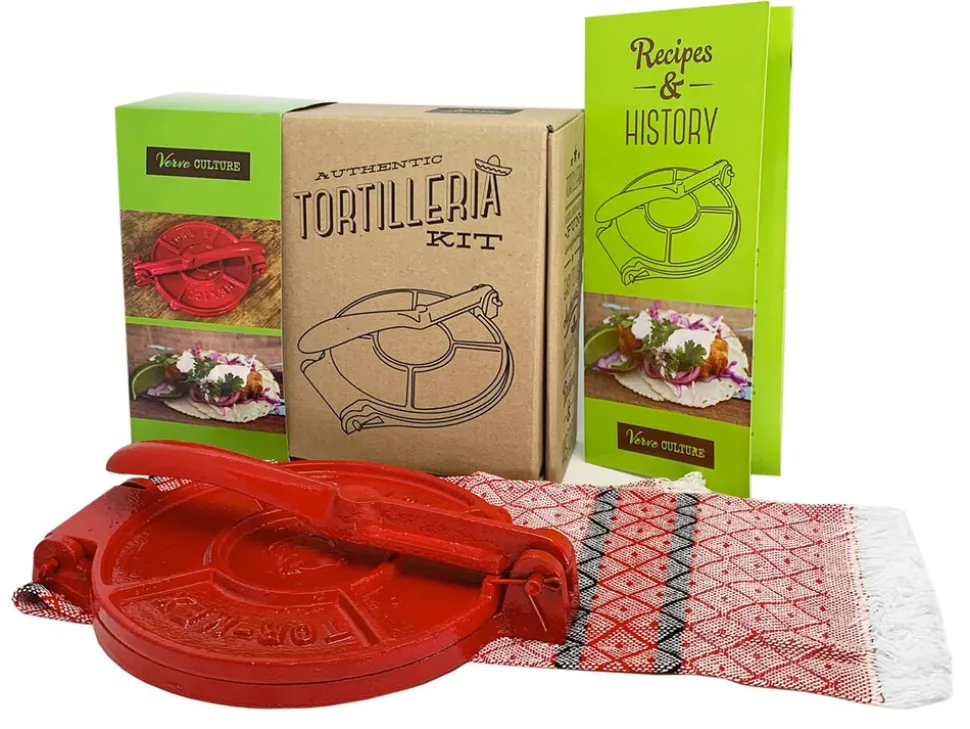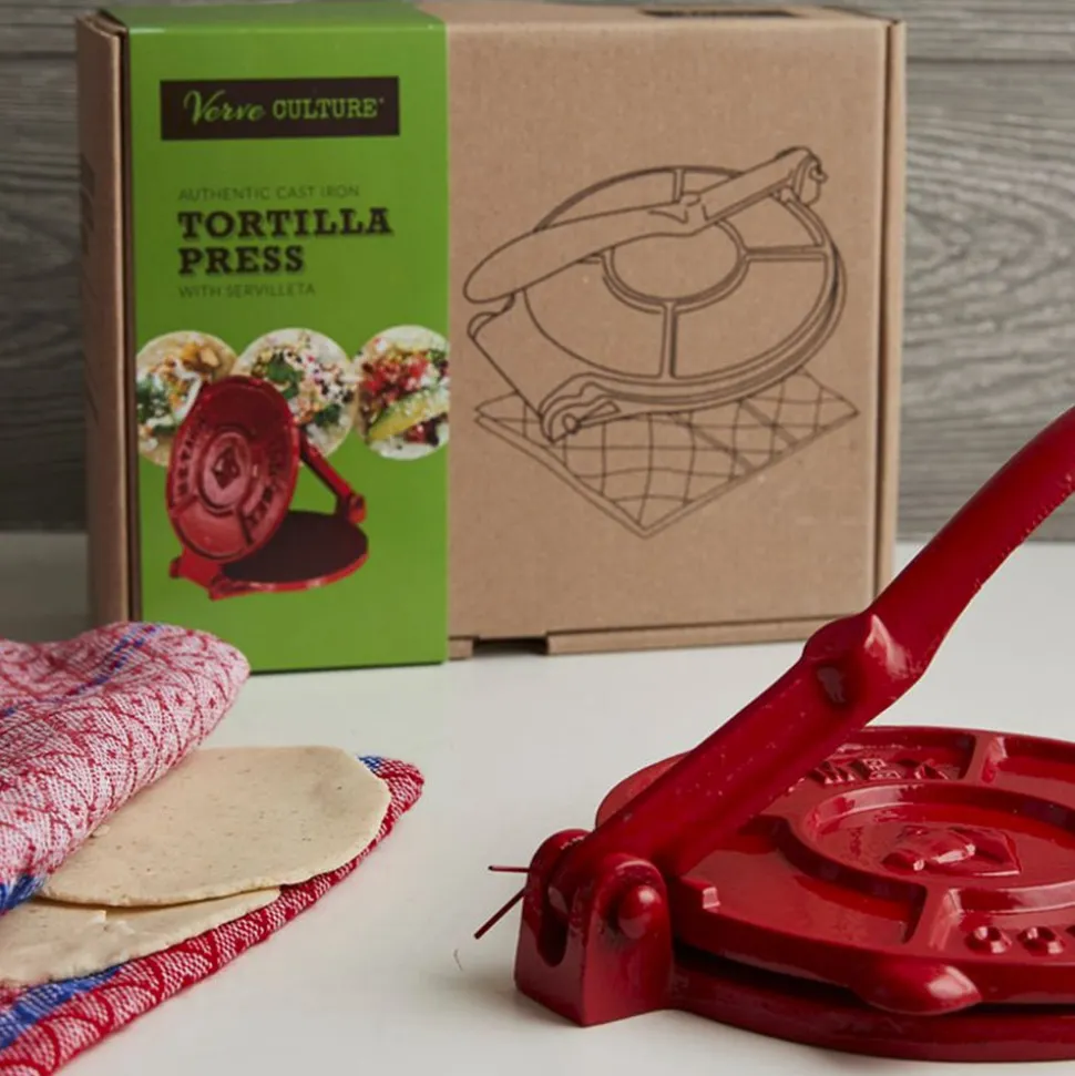 A marketplace for artisans all over the world, Verve Culture designs gifts and kitchenware for any home. With each item upholding the culture and tradition of its origin, the brand looks to enhance life’s passions: cooking, entertaining, and making lasting memories. In Mexico, tortillas are a staple and it makes sense to become obsessed with the homemade ones. Experience the art of traditional tortilla-making with the Tortilla Press Kit in Red Cast Iron with Servilleta. Made in Mexico from old Singer sewing machines and other recycled metals, the sturdy cast iron gives you uniform, flat tortillas, effortlessly, without compromising on performance. The ideal size for street tacos, it makes delicious tortillas, is easy to store, and it looks great on a countertop, too.