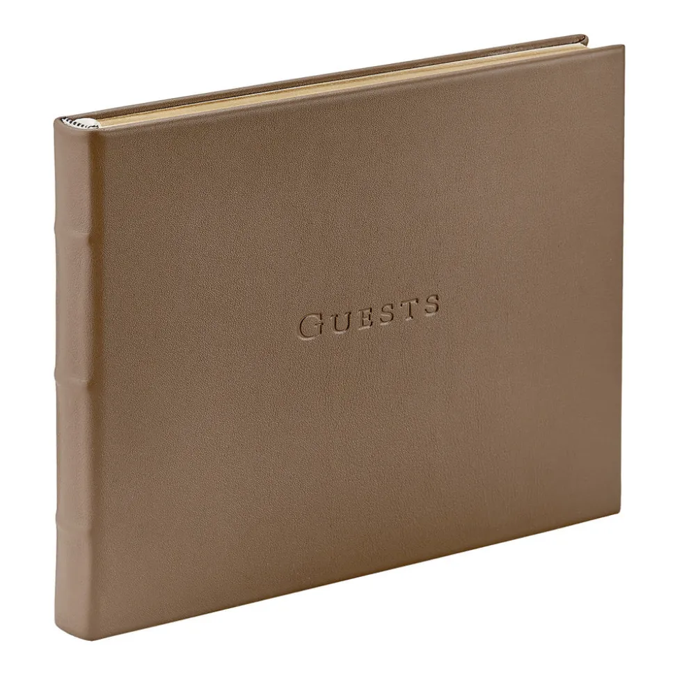 Founded in 1969, Graphic Image’s notebooks and accessories are united by the finest writing text paper, meticulously crafted smyth-sewn binding, and clean design. Working with tanneries in Italy and France, and embracing at once the unconventional and the traditional these are products that offer profound quality, functionality, and unyielding style. Whether you’re outfitting your chalet or recording guests at your big party, or wedding, the Traditional Leather Guest Book is suitable for so many social or business occasions. This one Includes 160 acid-free archival lined pages with gilt edges, enough room for your most important guests signatures.