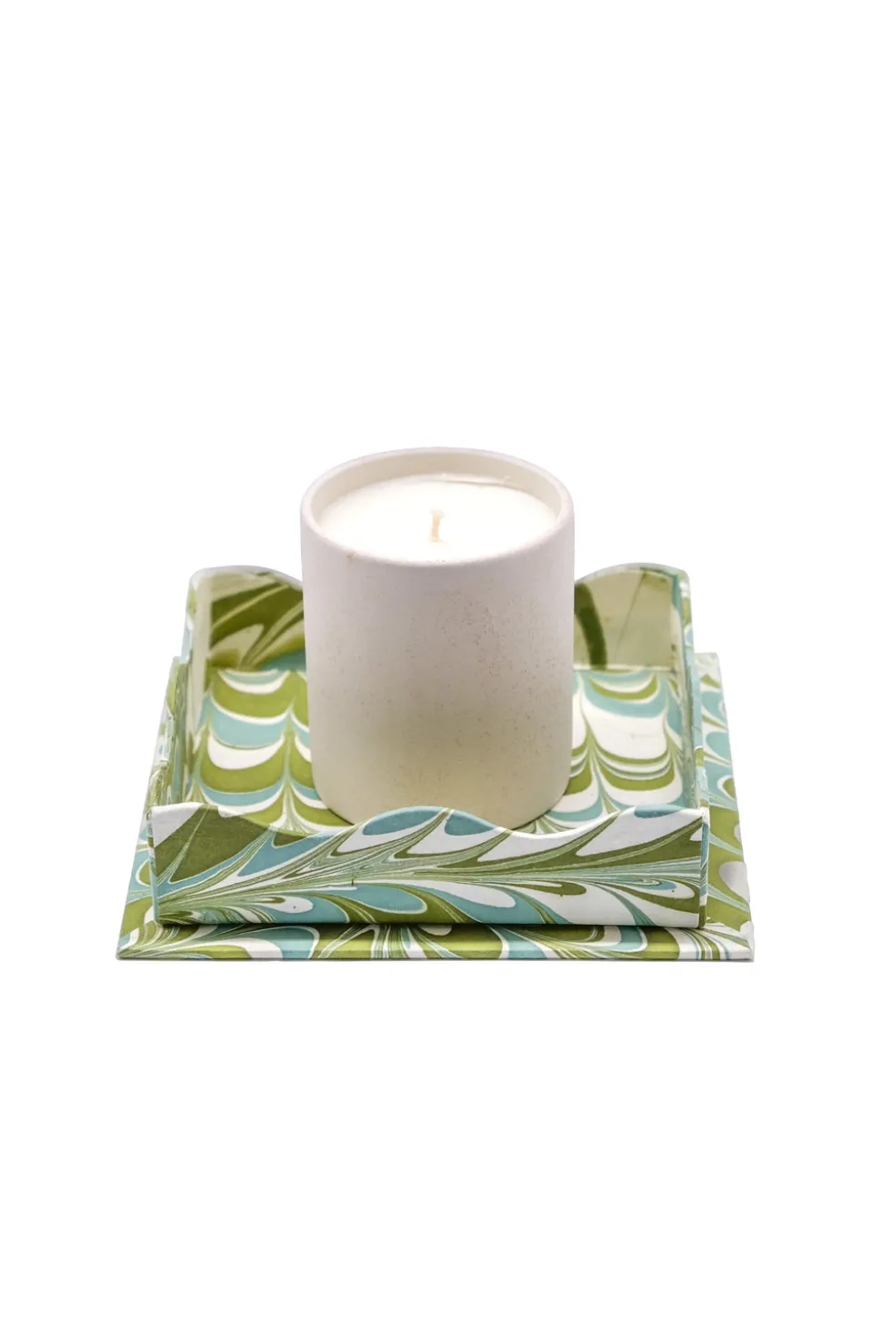 100% recycled cotton. Hand-marbled by artisans. Versatile for desk, vanity, or tabletop use. Each piece is unique.