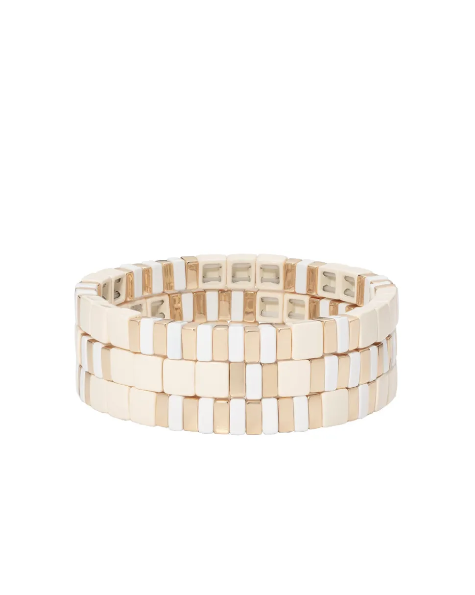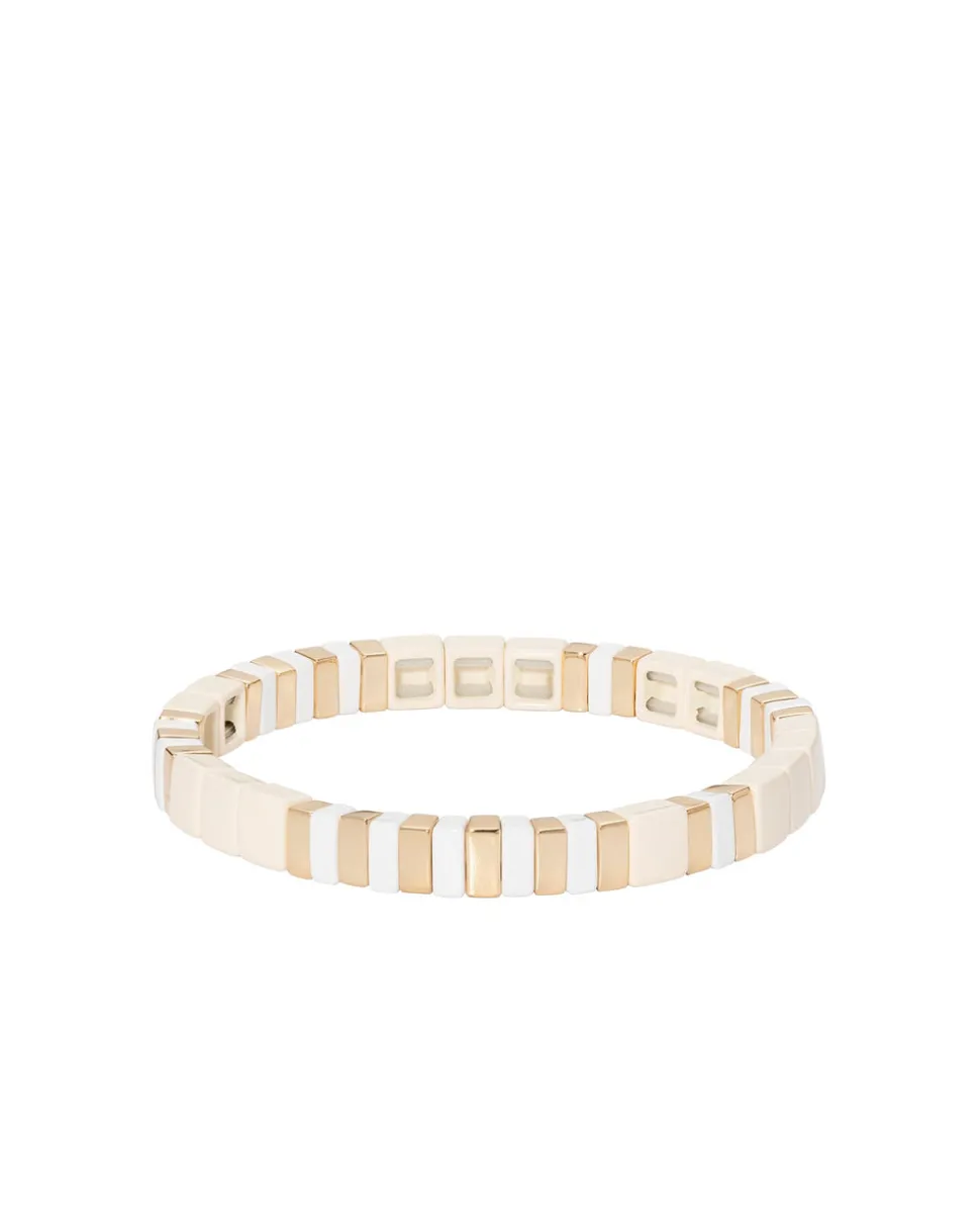 Whimsical, colorful, and crafted with tone-perfect details, Roxanne Assoulin’s four decades of experience—designing for the likes of Marc Jacobs and Oscar de la Renta—are expressed in every piece of her candy-inspired collection of bracelets, chokers, earrings, and more. As the brand likes to say, and as every “it” girl knows, it’s jewelry that makes you smile. The Triple Creme Bracelet features stacked layers of stretched gold and neutral tone beads that add instant sophistication to your look.