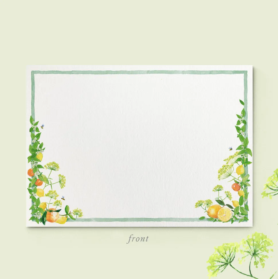 Where Clementina di Monte Rubello travels, her watercolor set goes with her. Born in Milan, she explores the world with an artist’s eye, translating her adventures and unparalleled taste into the stationery, cards, and tags that comprise her Clementina Sketchbook collection. A classic way to correspond, you can keep in touch, reach out, or just say thanks with the Tuttifrutti Stationery Cards. Printed with tropical scenery, hand-painted by Clementina, these floral-trimmed cards will be a welcome sight to any recipient.