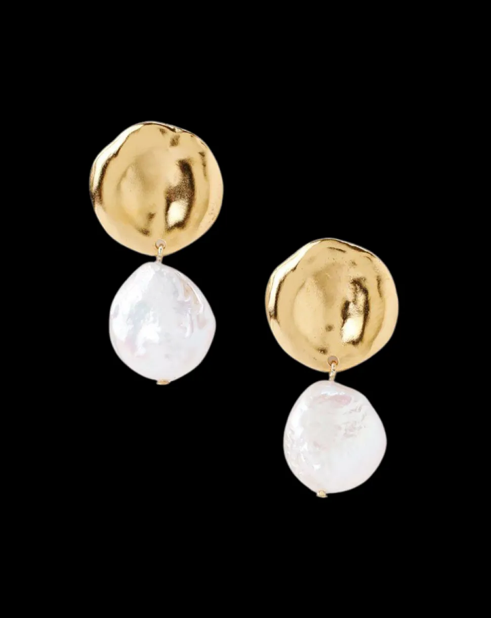 Designer Chan Luu creates homeware and jewelry that unites her passion for artisan-made crafts with a reverence for organic forms found in nature. Bold and striking, the Two Tiered White Keshi Pearl Earrings features a casted 18k gold plated sterling silver Keshi ‘pearl’ and a white Keshi pearl. These statement-making earrings pair well with any and every look.