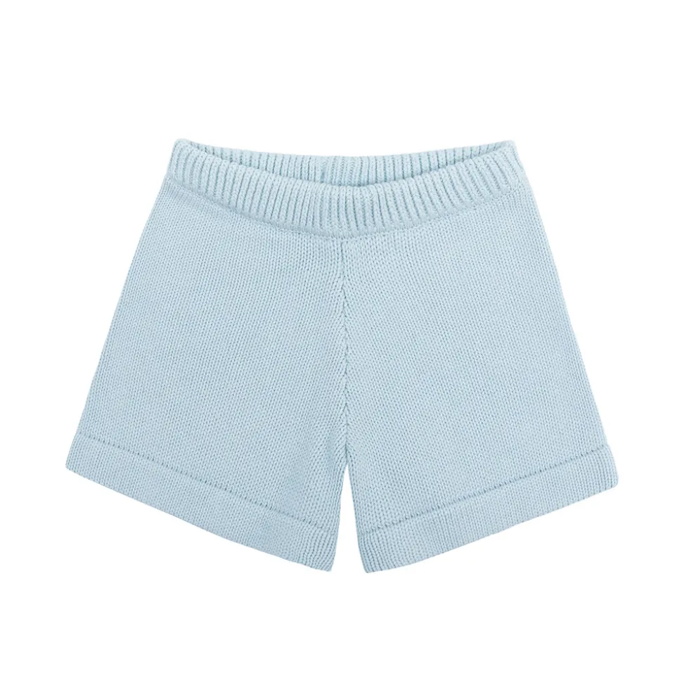 A family favorite for its clean lines and simple details, minnow creates pieces that are playful, polished, and thoughtfully designed for long days, sandy toes, and the wonderment of life on the shore. The Unisex Light Blue Knit Short is a cozy and ultra-soft premium knit essential designed for year-round wear. Featuring unique rib detailing throughout, this pull-on silhouette offers effortless style and comfort. Pair with the coordinating knit sweater for a sweet lounge set that will be a favorite for seasons to come.