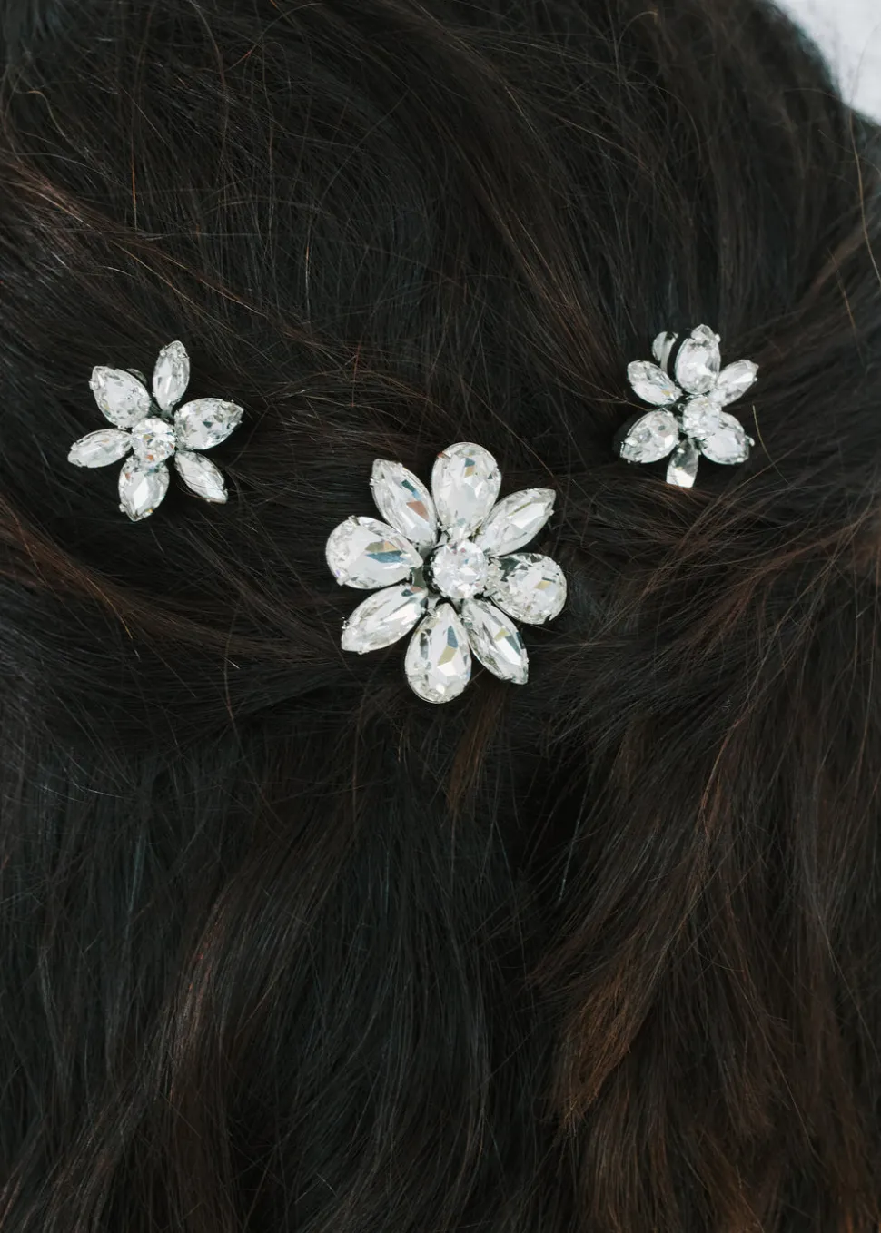 The Vada Bobby Pins make any look feel special. This set of three pins features crown-worthy crystals, backed by sturdy bobby pins to maintain secure placement in the hair. Layer multiple sets at once for a bespoke statement look.