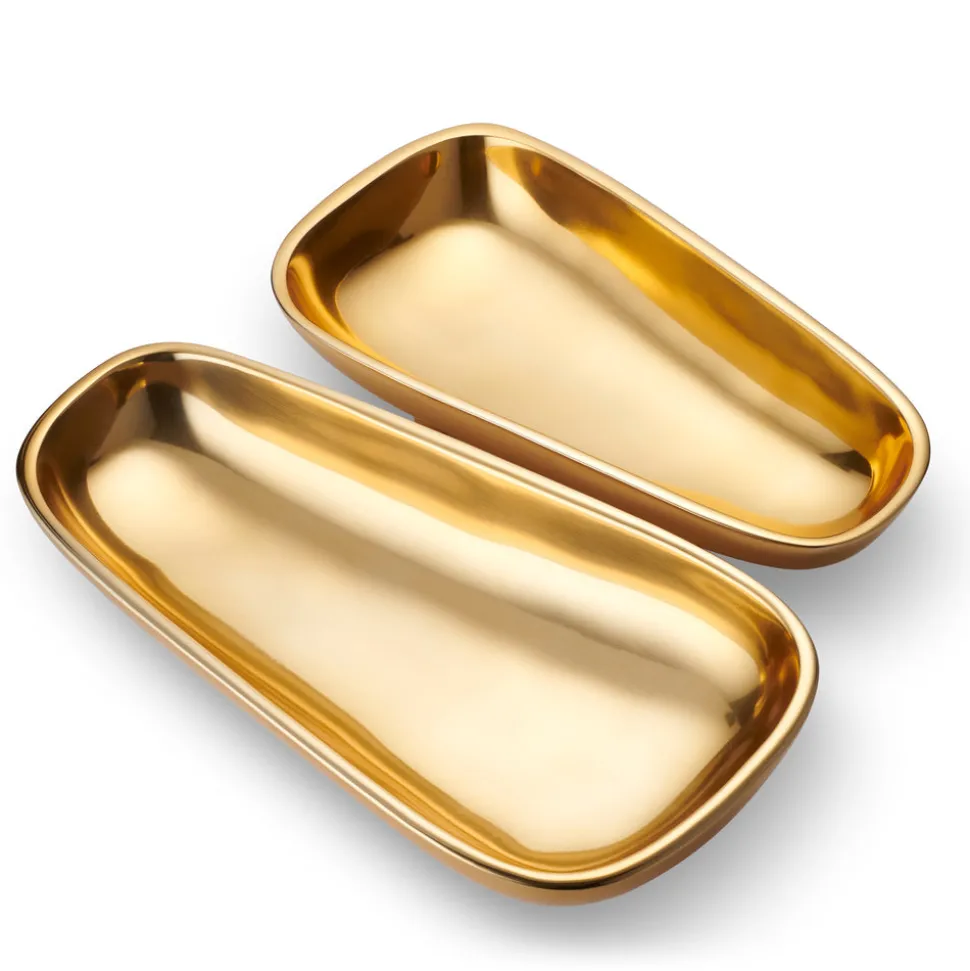 A shallow, elongated footed bowl that adds interest to any table. It offers a beautiful way to serve snacks such as peanuts and potato chips for a movie night or when entertaining.