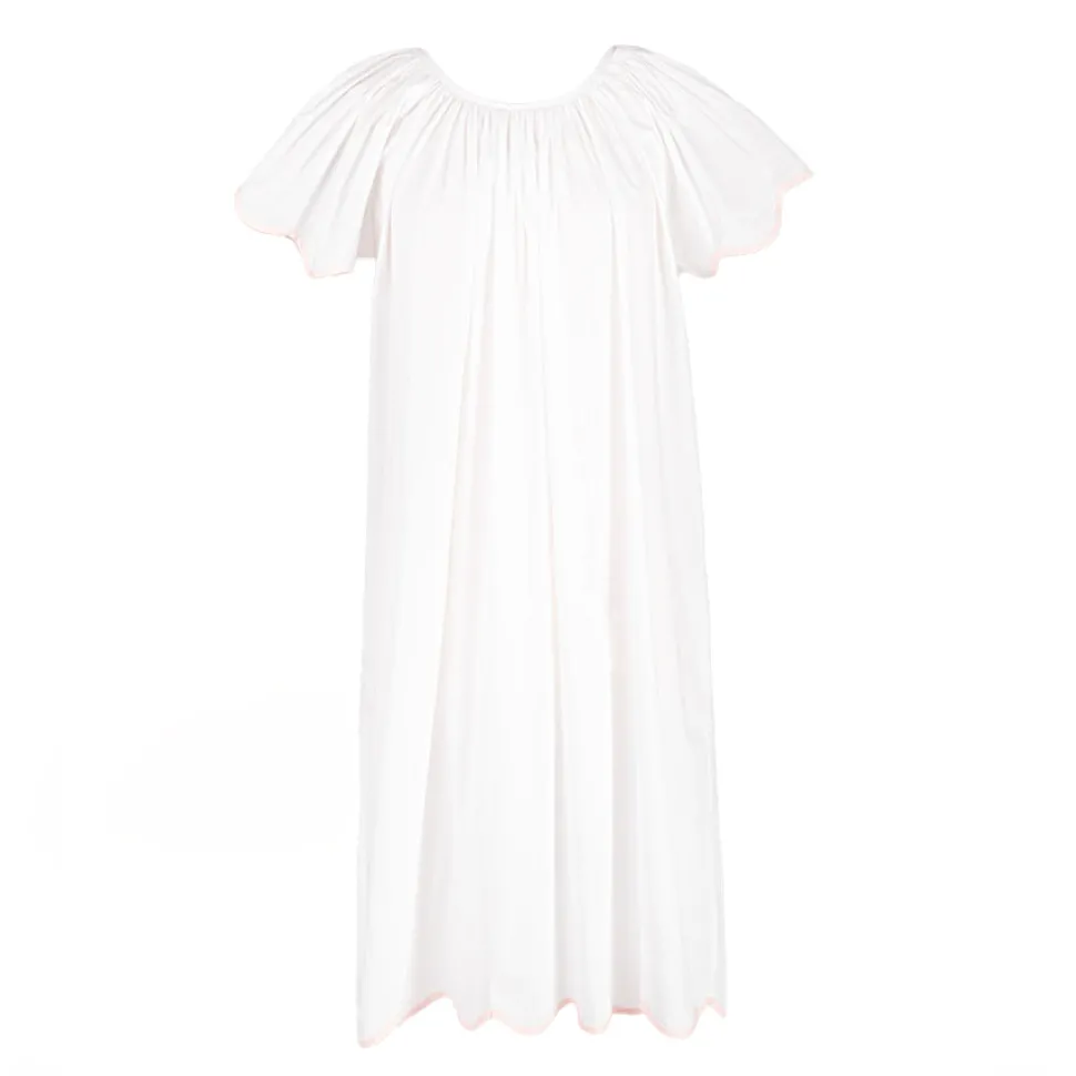 Timeless quality meets everyday living in Lenora’s ladies nightwear, travel accessories and baby clothes. Through their premium offerings, Lenora seeks to elevate every facet of a woman’s wardrobe, and their home. Crafted in lawn cotton, chosen for its lightweight, smooth feel, the Vandy Cotton Nightgown offers grace and comfort, boasting scalloped tape trim on the sleeves and hemline, and elegantly finished with a single button. You will love the full silhouette, falling from the gathered jewel neckline—at once sophisticated and easy.