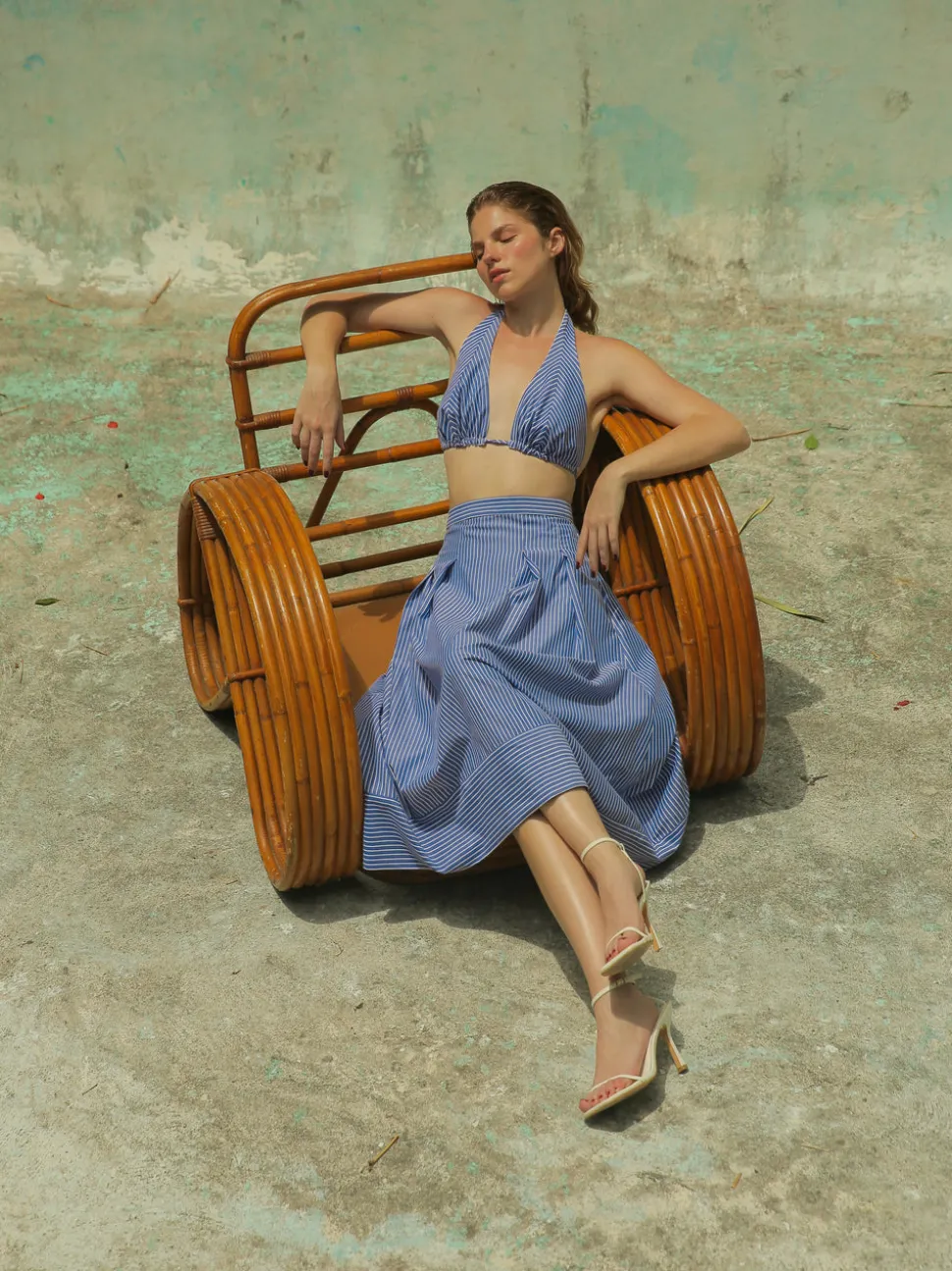 Founded by Daniela Panaro, No Pise La Grama, which translates to “don’t step on the grass,” is a Venezuelan fashion brand known for its feminine, timeless designs. As the name suggests, there’s a strong connection to nature through the elevated yet laid-back aesthetic inspired by travel and the art of traditional craftsmanship. The Vela Skirt in Blue Stripes offers a fresh, nautical-inspired take on a breezy classic. Crafted from 100% cotton with crisp vertical stripes, this high-waisted silhouette brings movement and ease to sun-soaked days and relaxed, elegant evenings.