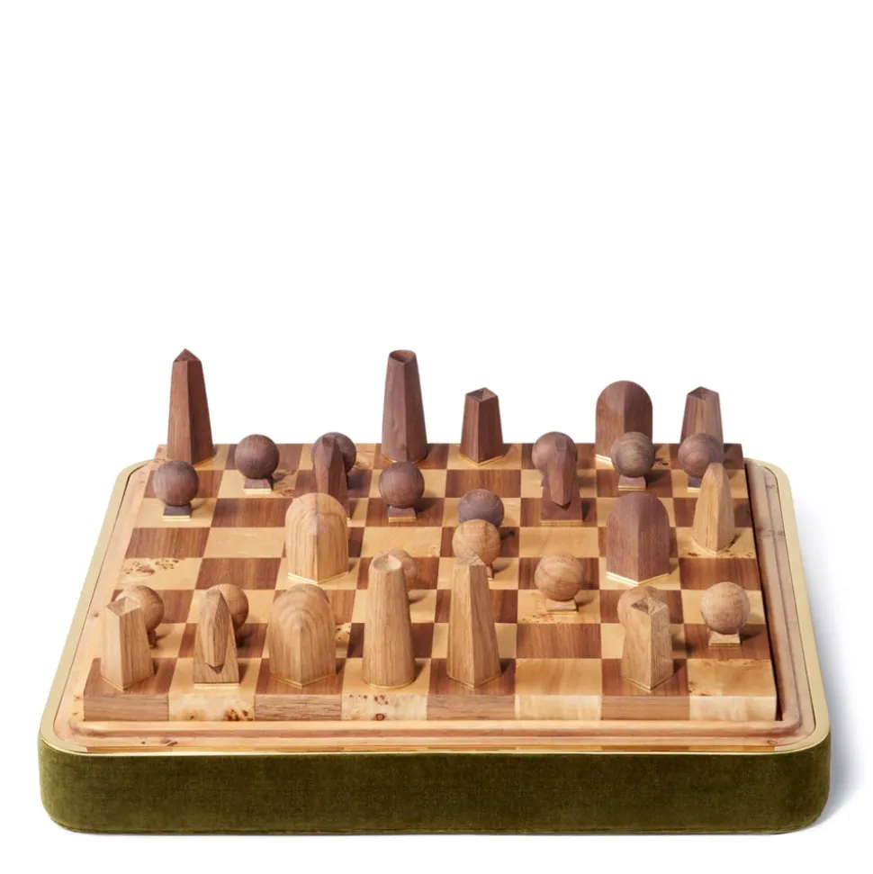 Velvet Chess SetMaterial: Velvet, Brass HardwareMade in IndiaL:10.8 x W:7.8 x H:5