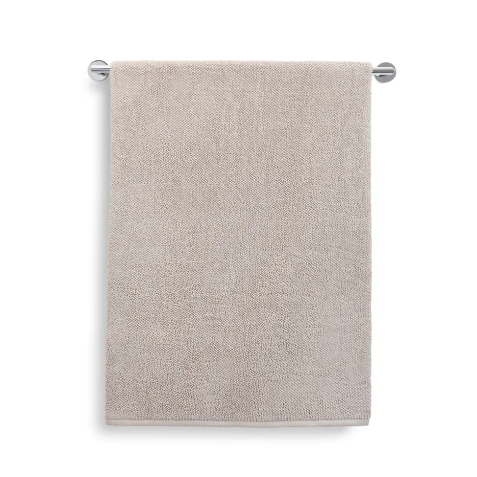 100% cotton. Bath towel features a sewn-in hanger loop.