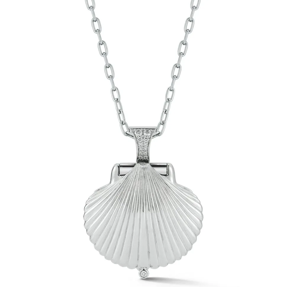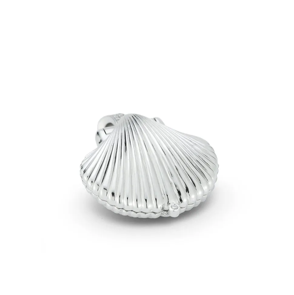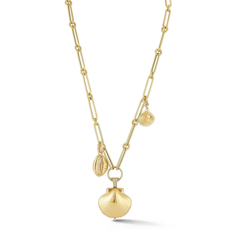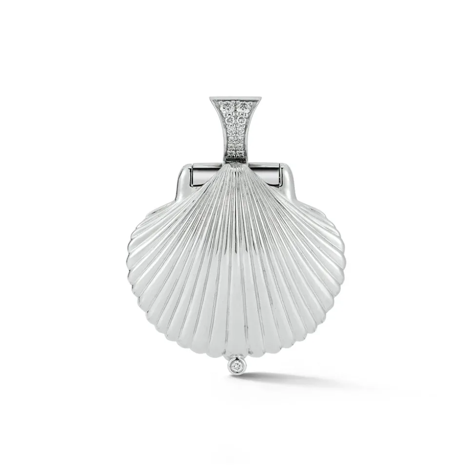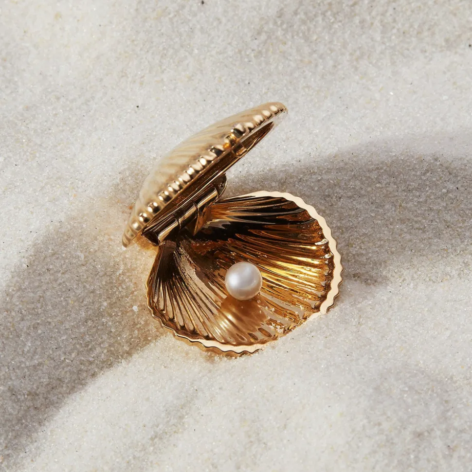 Inspired by her mother, who made golden jewelry from shells found near their home in Southern California, Renna Brown-Taher creates jewels of exquisite quality from the natural world, with minimal impact upon it. The Venus Locket is a celebration or the sea. The gold shell encases a gleaming pearl opposite side a whimsical engraved octopus. The locket is finished with a diamond bale and safety clasp.