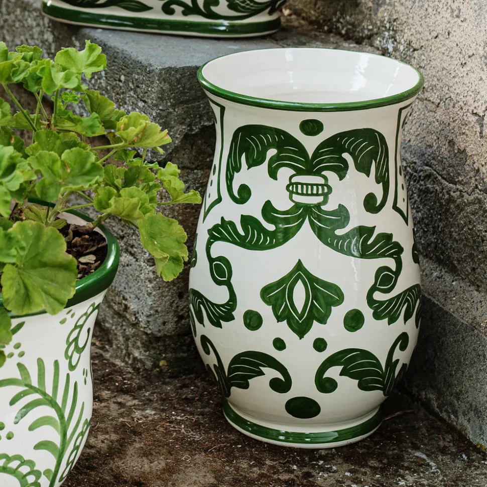 Inspired by Italian lifestyle, history, and culture, VIETRI uses the highest-quality clays from the soil of Italy’s countryside to produce beautiful, everyday items for your home. Hand-painted details, quality glazes, and fine craftsmanship help you savor the moments spent at your table and the company of those who join it. Bold and crisp in pattern, the Verde Garden Umbrella Stand boasts painterly brushstrokes in rich shades of green, making it a contemporary and traditional option for any home.