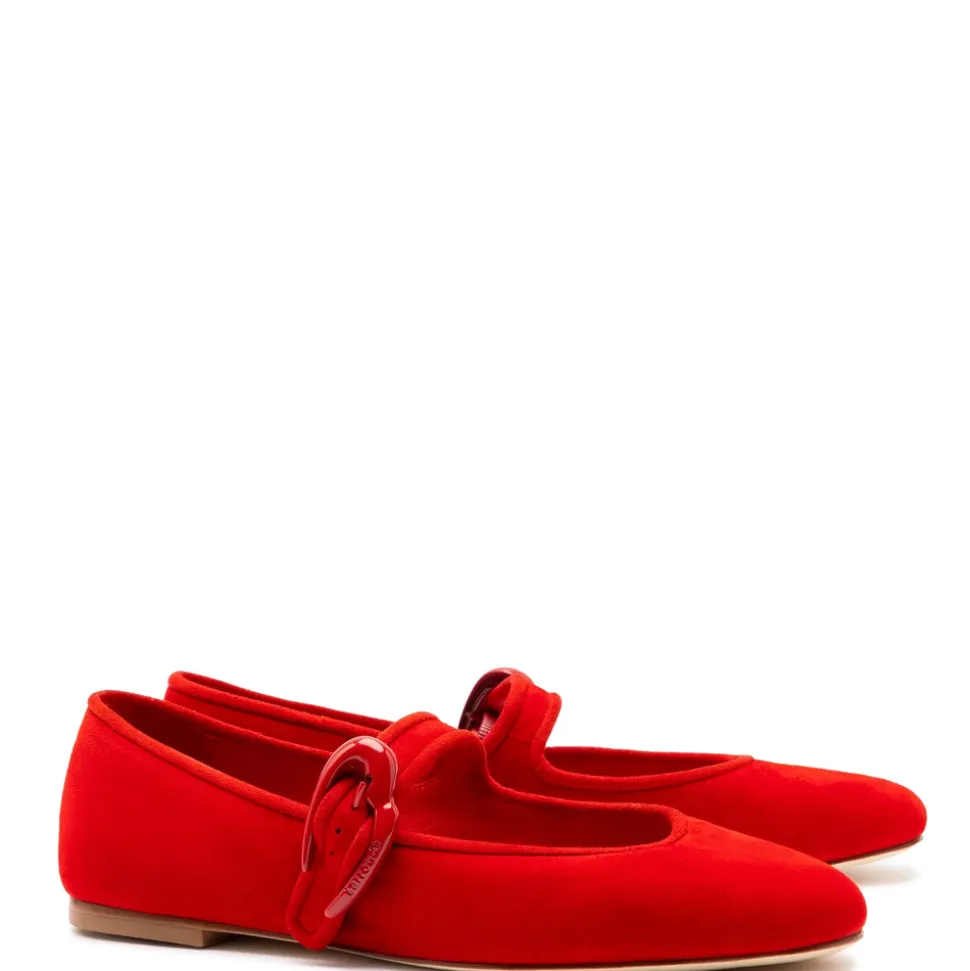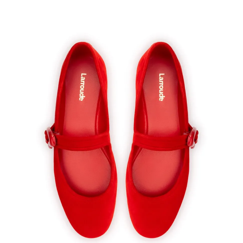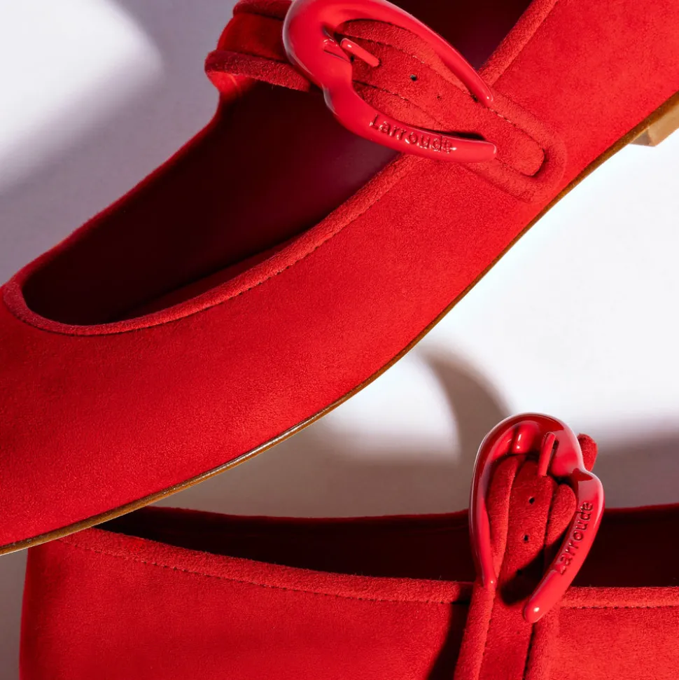Bold colors, playful patterns, and chic silhouettes are hallmarks of Larroudé, a shoe brand born of the pandemic from industry veterans and husband-and-wife team Marina and Ricardo Larroudé. The brand’s most comfortable flat yet, the Verona Ballet Flat In Scarlet Suede offers romantic cues with its soft supple suede that gently hugs the foot, and a heart buckle at the ankle strap. Your new go-tos.
