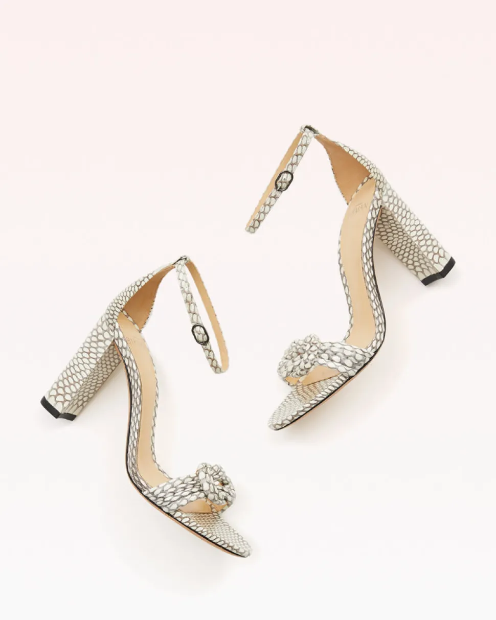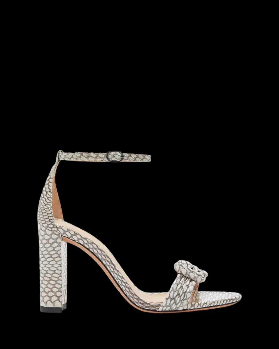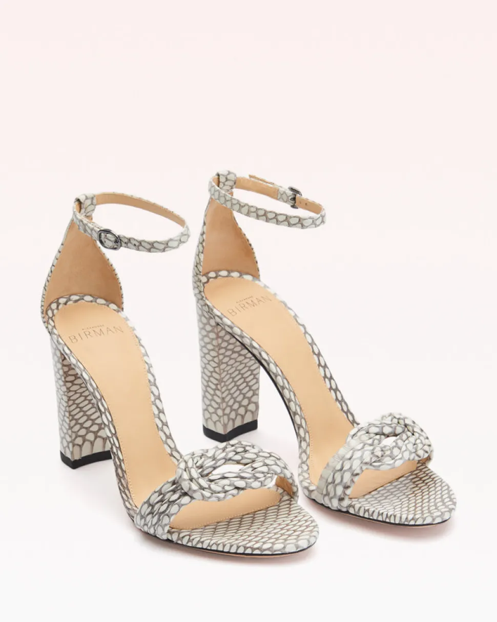 Founded in 2008, Alexandre Birman infuses each of his fine footwear collections with the spirit, sensuality and sophistication of his Brazilian heritage. Beginning with thoughtful drawings, exceptional craftsmanship is the brand’s cornerstone, employing fine artisans, superior materials, and thoughtful design to create timeless, luxurious shoes, style after style. Crafted in a snakeskin, including a printed variety, the Vicky 90 is accented with a knotted detail, making it ideal for day-to-night wear.