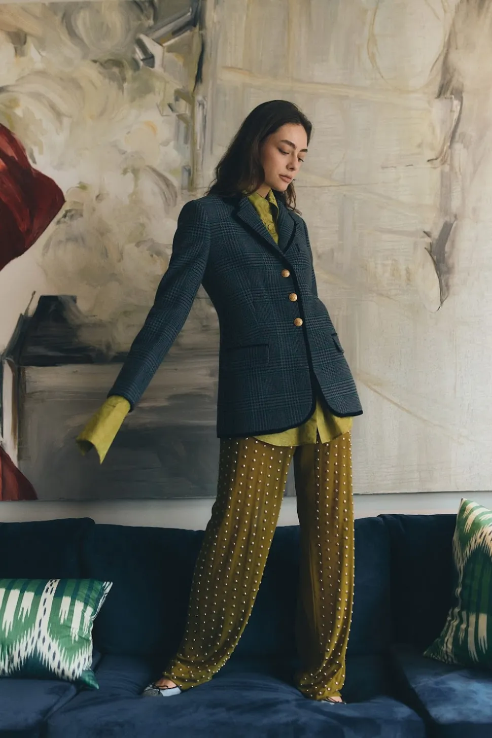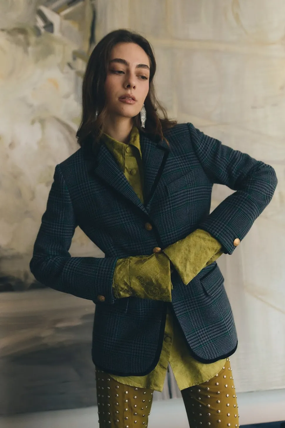 Looking to their Peruvian and Bavarian heritage, lifelong friends Sabrina Burda and Noelle Pallais were inspired to create Sanoë by rummaging through their grandmothers’ closets. With an eye on slow fashion and the other on contemporary style, the NYC-based brand designs their jackets—based on alpine peasant “trachen jacken”—to stand the test of time in small batches using ethically sourced fabrics. The Victoria Dorset Jacket in Plaid is classic and confident. Wrapped in timeless checker, it evokes the charm of the English countryside.
