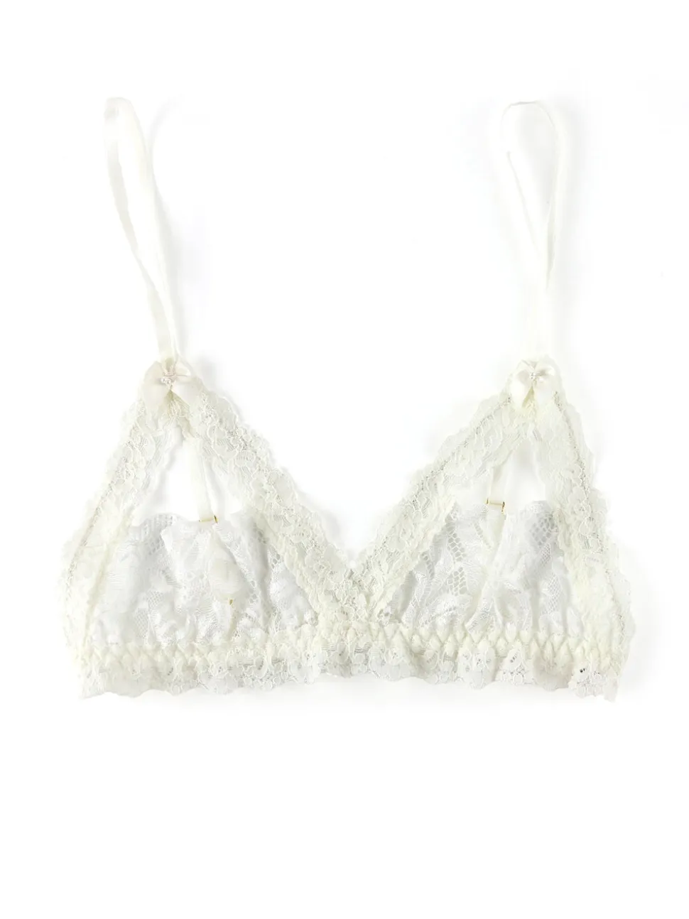 Hanky Panky’s signature V-front and V-back waistband revolutionized the world of lingerie 30 years ago and has put an end to panty-lines. Soft and stretchy, Hanky Panky officially makes the World’s Most Comfortable Thong. A sexy match with the Victoria Lace Open Thong, the Victoria Lace Open Bralette is crafted in the brand’s anything traditional luxurious Chantilly-style lace.