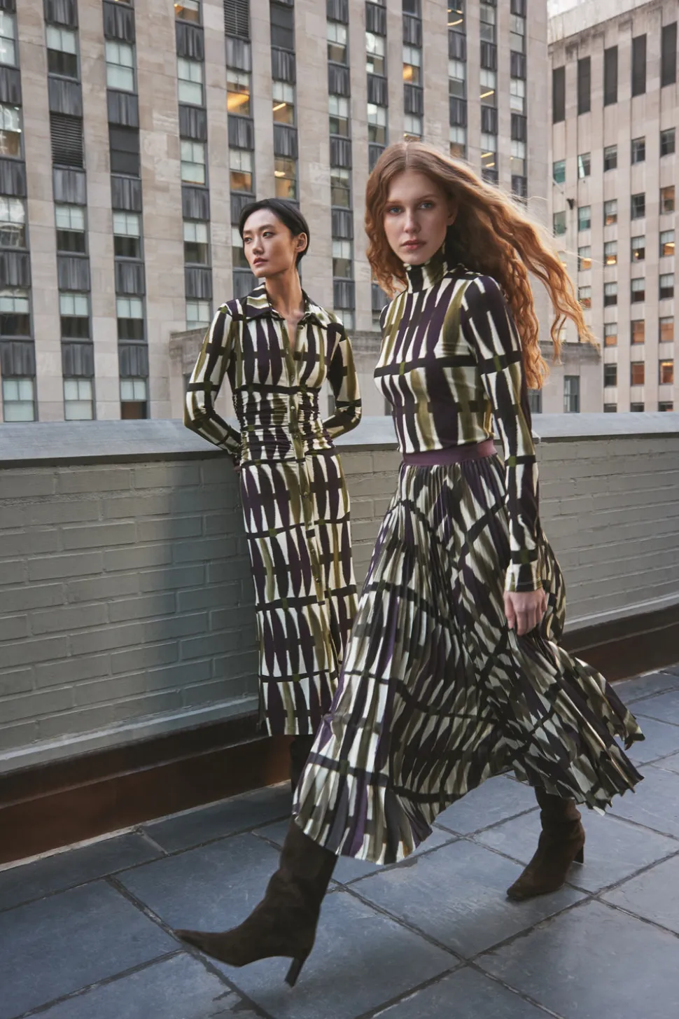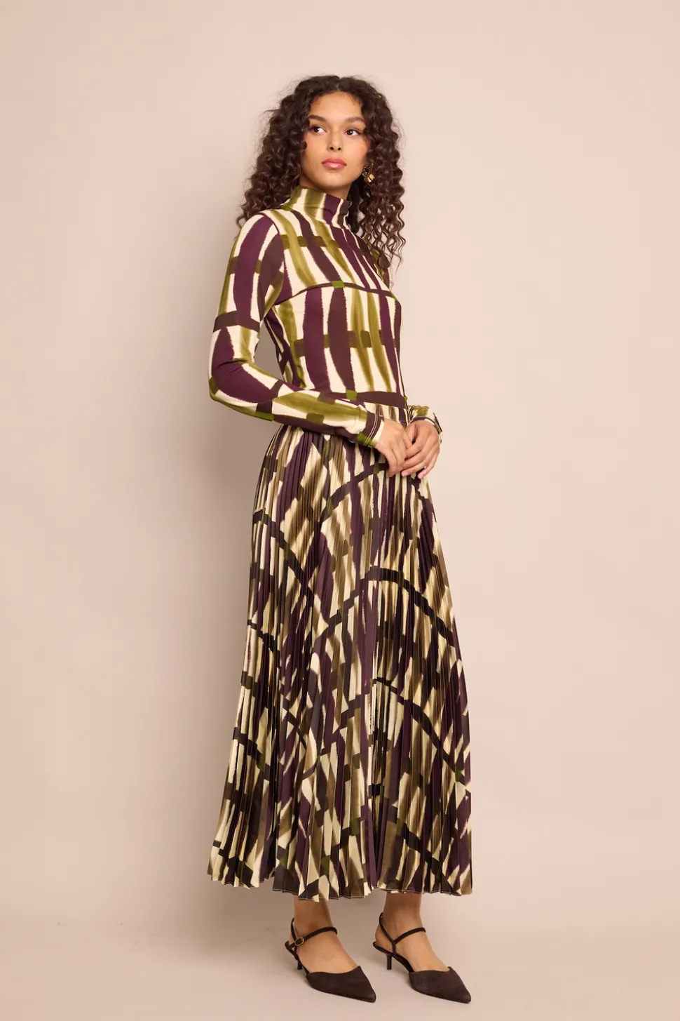 Founded by three New York City-based mothers who met through their kids, Cara Cara’s hallmarks include crisp poplin, house-designed prints, and casual glamour. The inspiration for their ethical womenswear comes from interior design, as well as the world’s most exotic locales. The Vienna Skirt in Amable Olive brings movement and texture to autumn dressing. Defined by precision accordion pleats, this easy faux-wrap midi flows effortlessly with every step, while an elasticated waistband ensures comfort without sacrificing elegance.