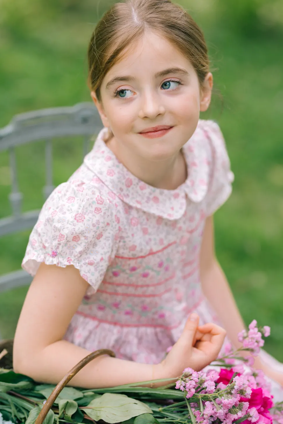 Antoinette Paris creates elegant, handmade garments for little girls, designed in Paris with sophisticated, refined, and exclusive “Haute Couture” details. Their collections include dresses, dungarees, and bubbles, available from birth to 10 years old, made for any occasion and tailored for a new generation of children. Under the shade of a blooming Parisian garden, the Violette Floral Pink Short Puff Smocked Dress captures the essence of French elegance. This smocked dress features delicate hand-embroidered flowers in blue, pink, and yellow, adorning the chest like a painter’s masterpiece. The classic Peter Pan collar and puff sleeves add a touch of timeless charm, while the reversible blue bow at the back makes a statement worthy of any girls summer dress. Crafted from 100% cotton sourced from Lyon, France, this heirloom piece promises both style and comfort. Coordinates beautifully with the Violette Blue Baby Set for adorable sisters matching outfits.