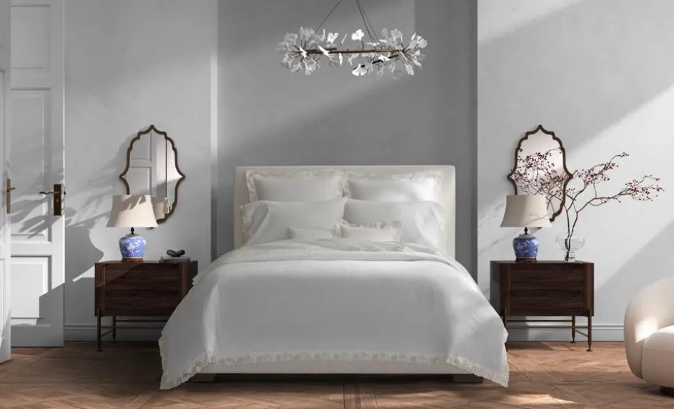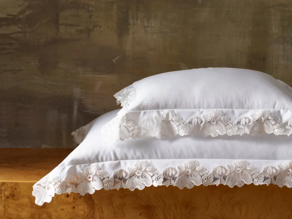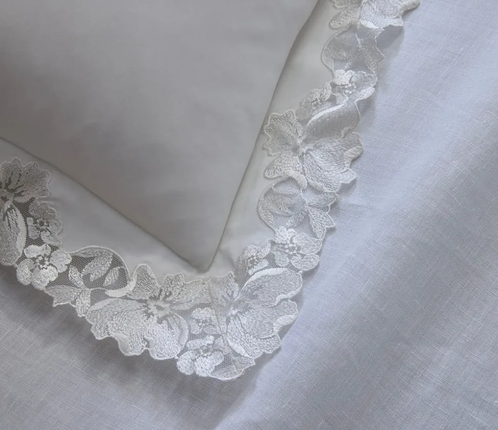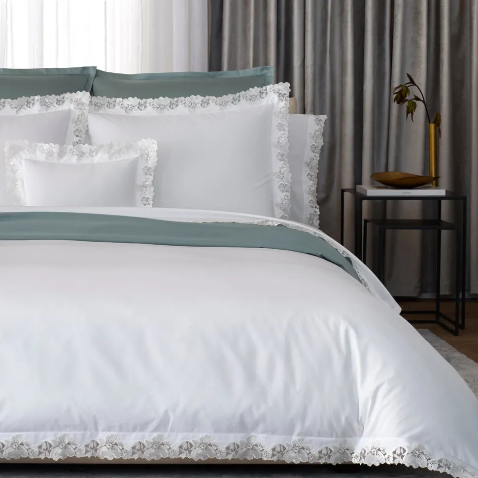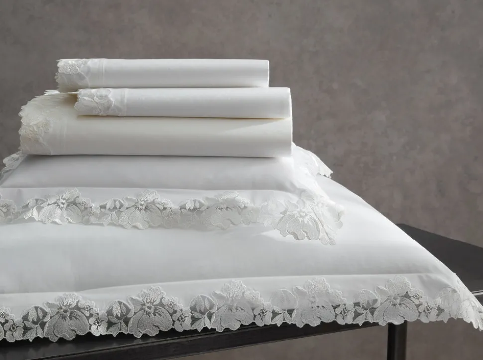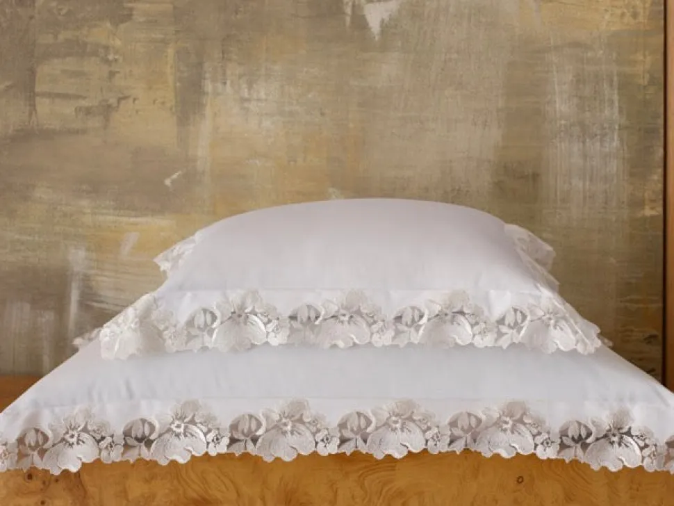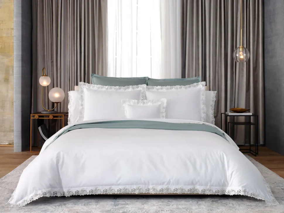 For nearly 100 years and three generations, Matouk has handcrafted luxury linens from the world’s finest materials. Their dedicated artisans in Fall River, Massachusetts are committed to creating the highest quality, most-loved bed, bath, and table linens for your home. The Virginia Collection embraces an archive-inspired Swiss lace, cut and placed by hand on supremely luxurious, 1000 thread count Gatsby Giza Egyptian cotton percale.
