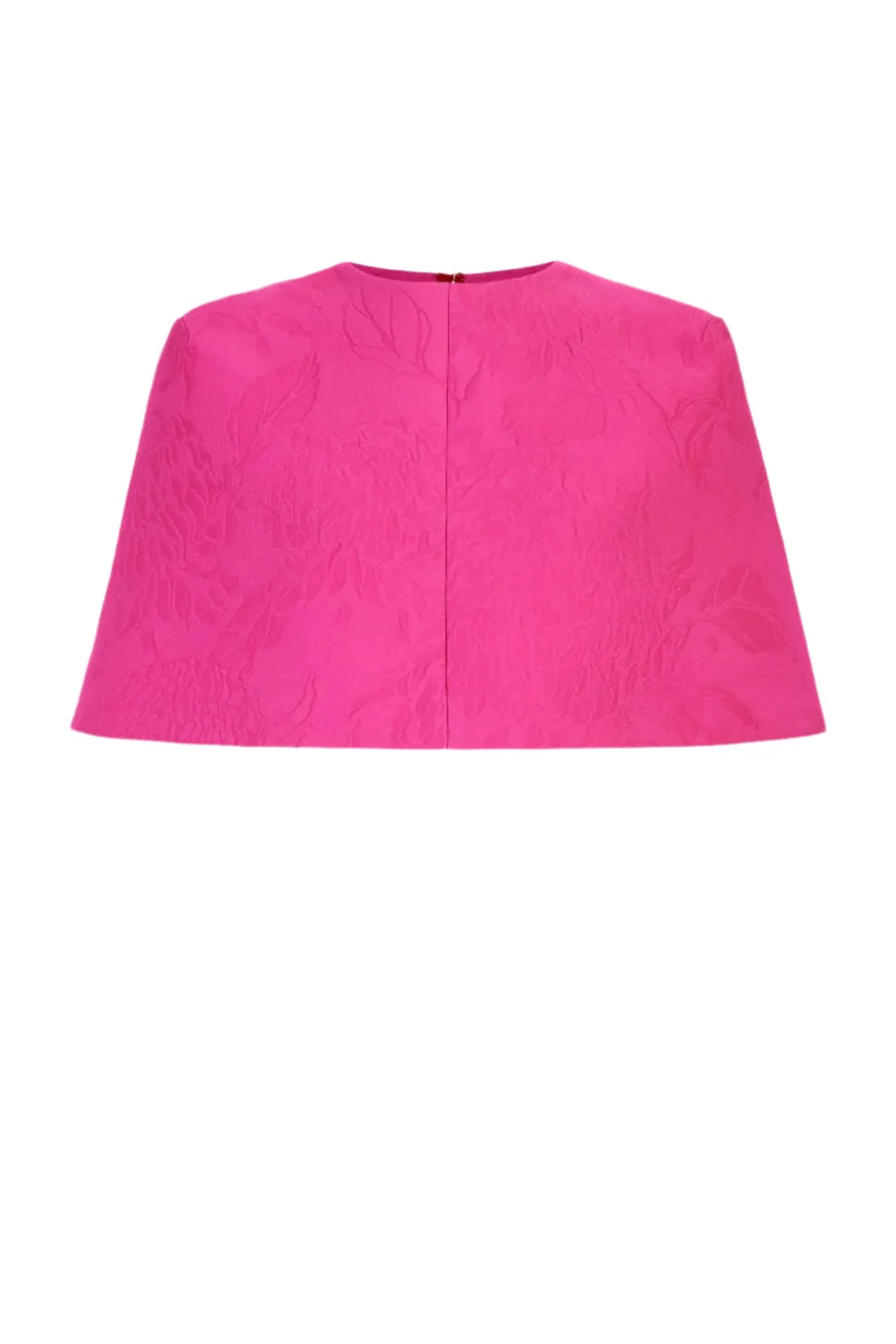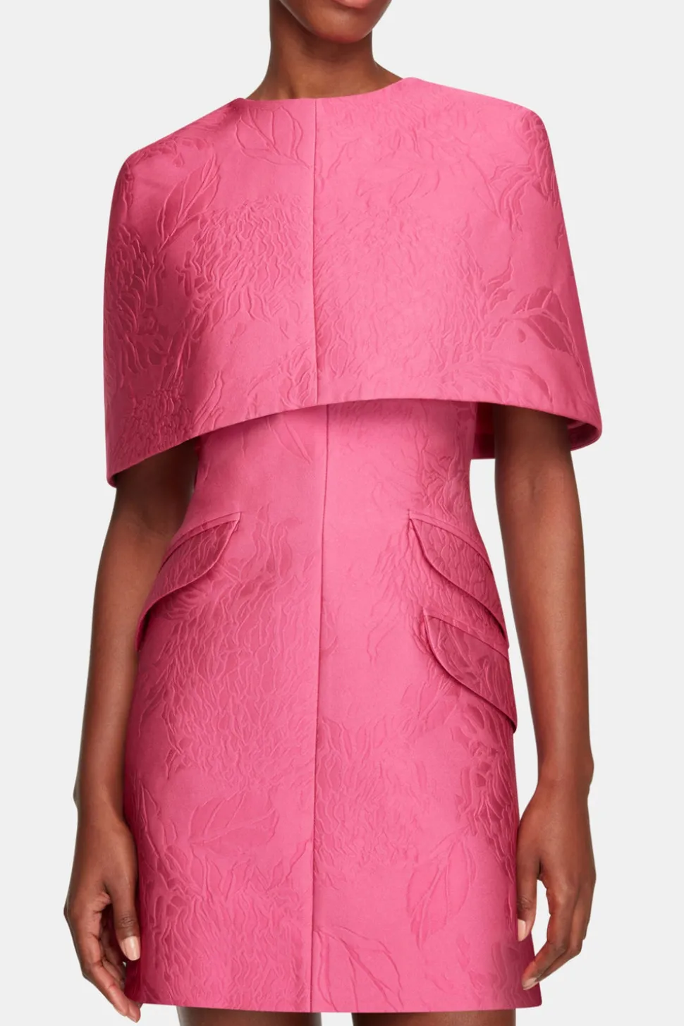 Emilia Wickstead is the epitome of modern femininity. Established in the U.K. in 2008, the ready-to-wear designer is known for impeccable tailoring, bold color, and timeless quality. The Virginie Cape in Hot Pink Embossed Cloqué offers a striking yet refined layer to complement occasionwear. Crafted from floral-textured cloqué in a vivid pink hue, it’s designed to pair seamlessly with the Mara Dress—adding elegant coverage and versatility that transitions effortlessly from day to evening.