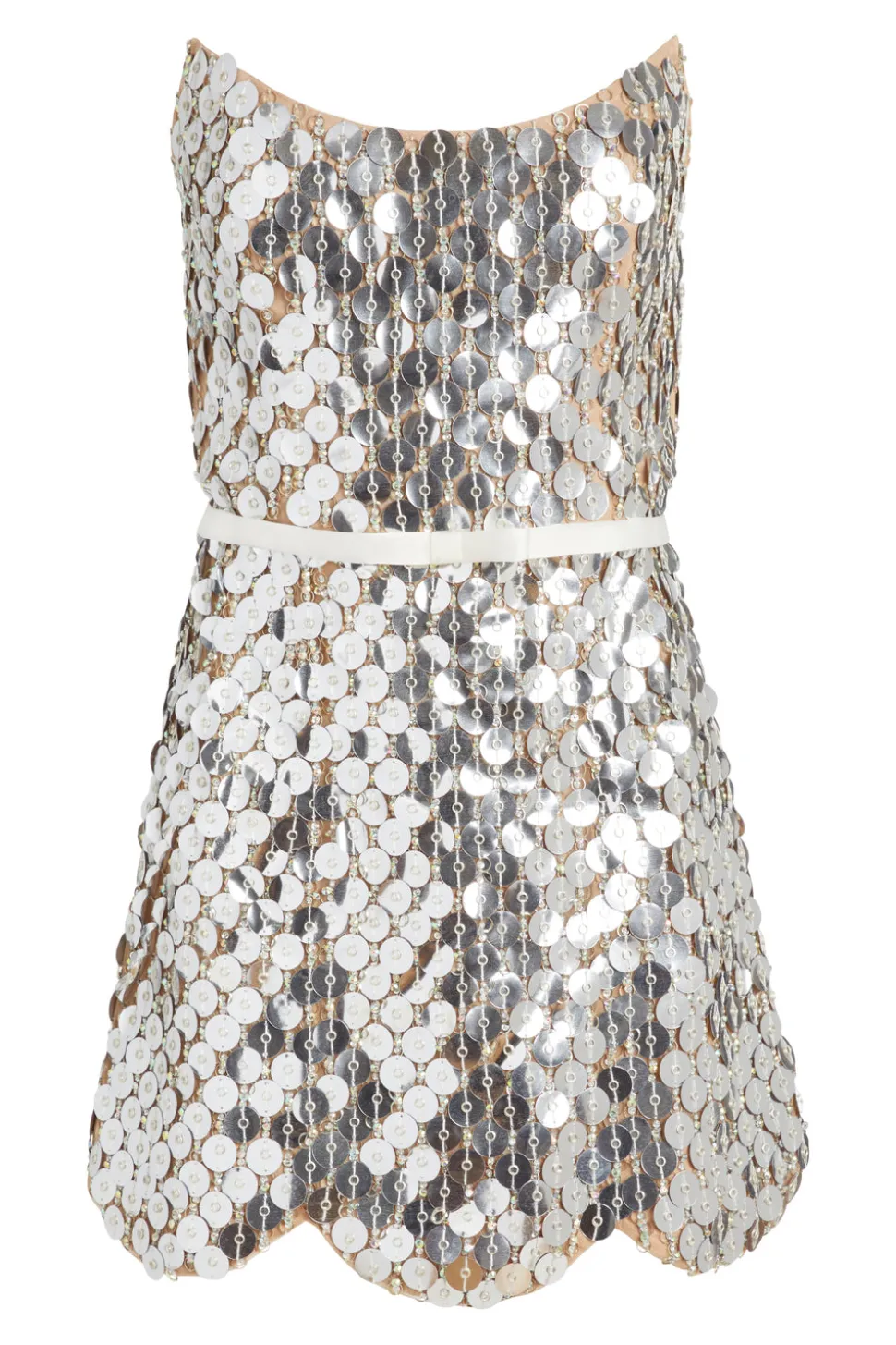 Named for a particularly radiant group of galaxies, Markarian combines designer Alexandra O’Neill’s love of the cosmos and celestial romanticism with timeless design and modern silhouettes. A forward-thinking approach to fashion and a focus on fine craftsmanship result in dresses that are beautiful, well-made, and flattering. Shimmering and stunning, the Vivienne Silver Paillette Mini Dress with Scalloped Hem and Detachable Bow Belt is your new go-to for that special event.