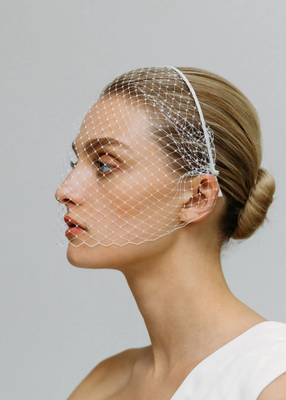 The Voilette Headband has inspired a movement of modern veiling, but none can compare to this handmade original. The French-inspired veil sits on a fine silk-wrapped headband, falling elegantly across the face. This piece is a chic statement, and can add a fashion-forward twist to any look.