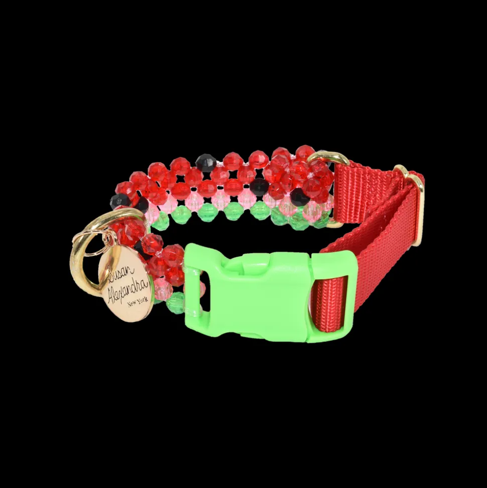An Instagram and celebrity-favorite, Susan Alexandra’s carefully designed pieces bring whimsy to another level, and another world. Enter a youthful landscape of candy-colored jewelry, brightly beaded bags, as joy, fun, and fashion shine forth from every piece, and pop of color. The Watermelon Dog Collar is a fruity, beaded lead (with seeds), featuring a bright buckle, which will elicit all kinds of coos and kudos from your friends or fellow moms and dads at the dog park.