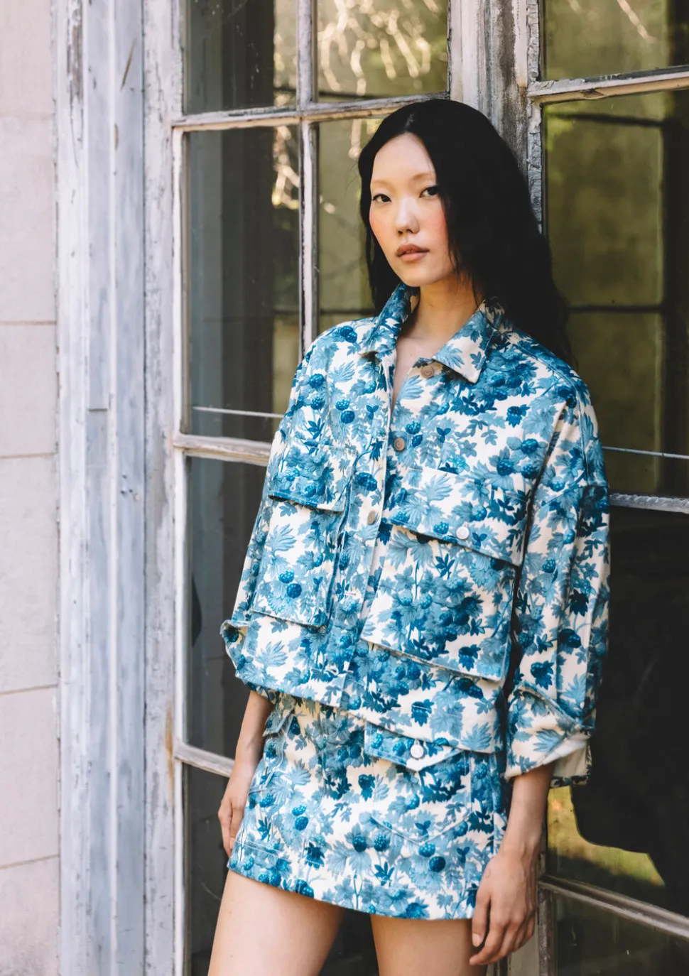 • Patch pockets at front and back skirt