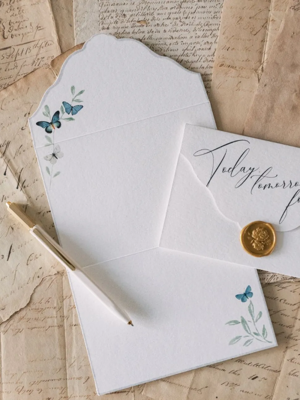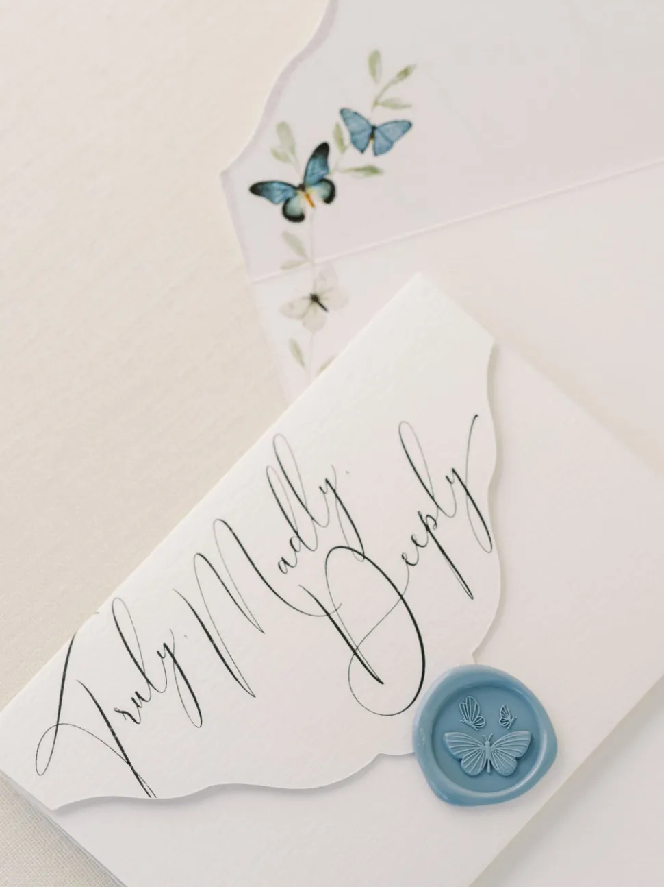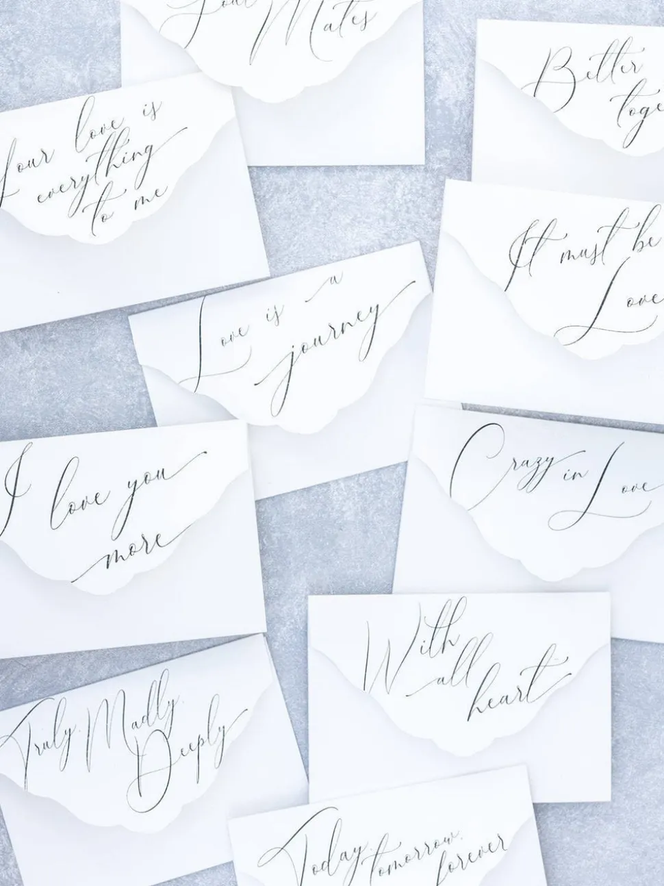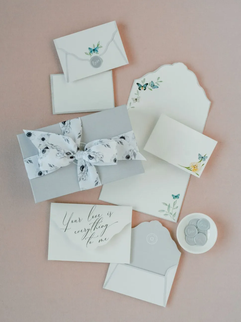 The box set included 10 hand scripted love quote note cards, 20 mini note cards and 30 blue wax seals.