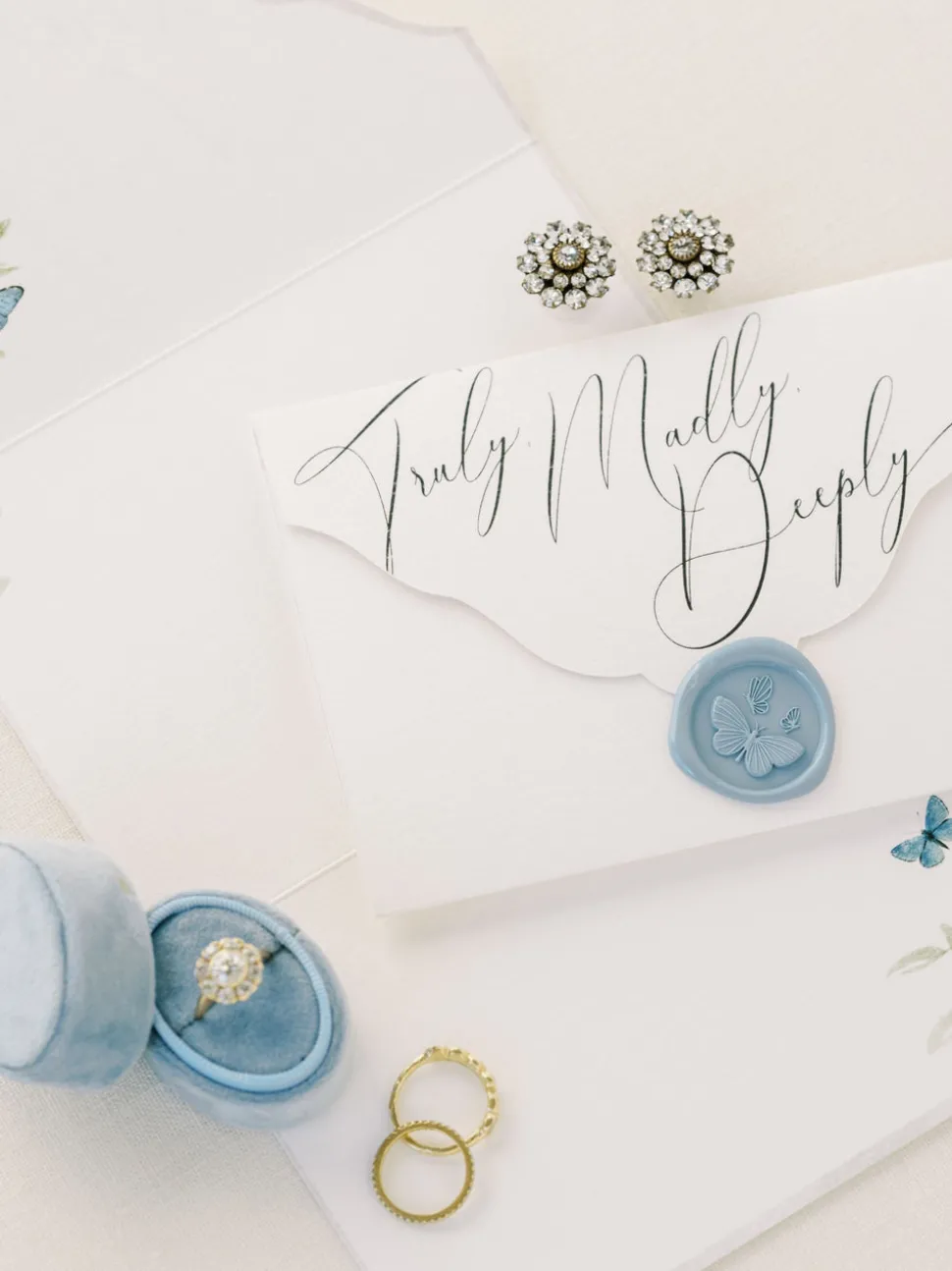 Arriving from the world of interior design, Maria Caruso Martin now shares her signature sophisticated style with brides and fashionable women looking for the perfect wedding day accessories and forever heirlooms. In collaboration with Shhh My Darling, a renowned Italian design team, the Wedding Stationery Set arrives complete with essentials like vow note cards, wax seals, and more. Each element is more special and endearing than the next, and is crafted with a watercolor floral motif and blue butterflies. There’s no gift bridal that will be more appreciated.