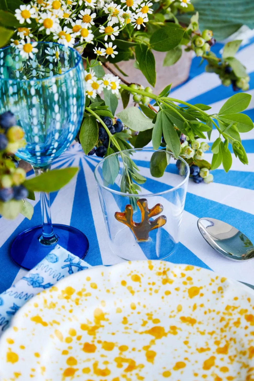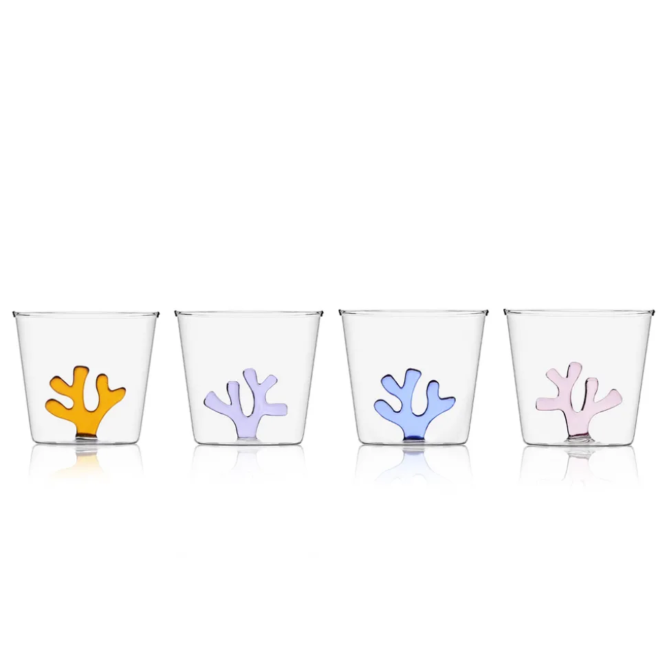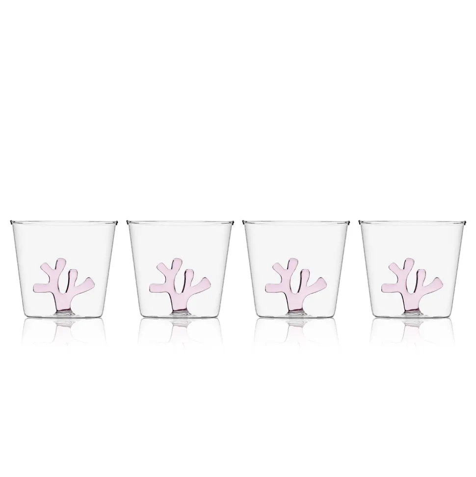 Evolving from the Italian word “sprezzatura,” or effortless elegance, Sprezz founder Anam Sadarangani imbibes her glassware with this creative nonchalance, bringing joy, connection, and conversation to every tabletop, and everyday life. The Whimsical Tumbler Glasses, Set of 4, are all you need to set the tone for your summer party. Crafted in lightweight from borosilicate glass, and featuring a translucent coral decoration, we love them for fruity margaritas, or just to elevate a glass of water; equal parts sophistication and fun.