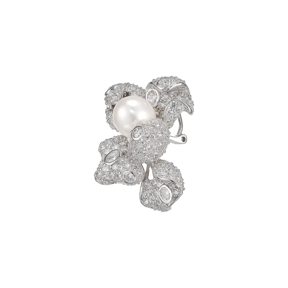Metals: 18k gold and rhodium vermeil. Simulated gemstones: white diamonds. Cultured gemstones: freshwater pearl. 14K gold posts. Handcrafted in the United Kingdom.