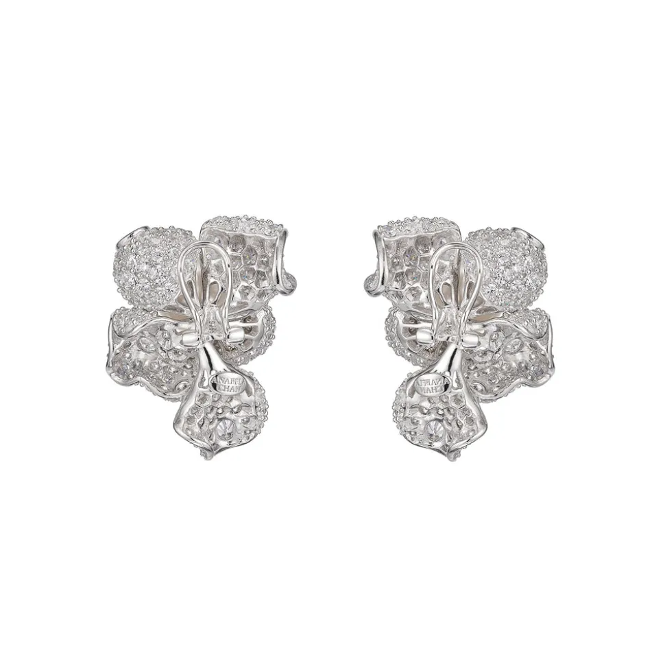 London-based Anabela Chan’s background in architecture and luxury fashion led to the first fine jewelry line to champion laboratory-grown gemstones. Today, its artisanal craftsmanship and sustainable innovations have found a place in the collections of royals, Rihanna, Taylor Swift, and sophisticated women worldwide. The White Blossom Pearl Earrings are a subtle statement and a true testament to the difference expert craftsmanship makes. A freshwater pink-lustre pearl at the center of each stud is beautifully surrounded in 368 laboratory-grown simulated white diamonds on 14K gold posts with a total weight of over 32 carats. Of note is the 360 degrees technique with with the stones are set around the flower, giving a dramatic effect that can be appreciated from all angles.