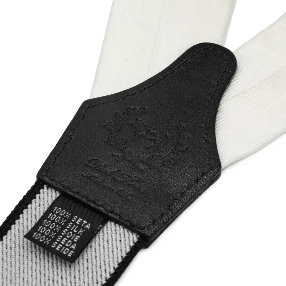 100% silk and 100% calf leather. Comes in two colors: Black Silk or White Silk. Del Toro logo embossed in leather on the interior label. Made in Lake Como, Italy
