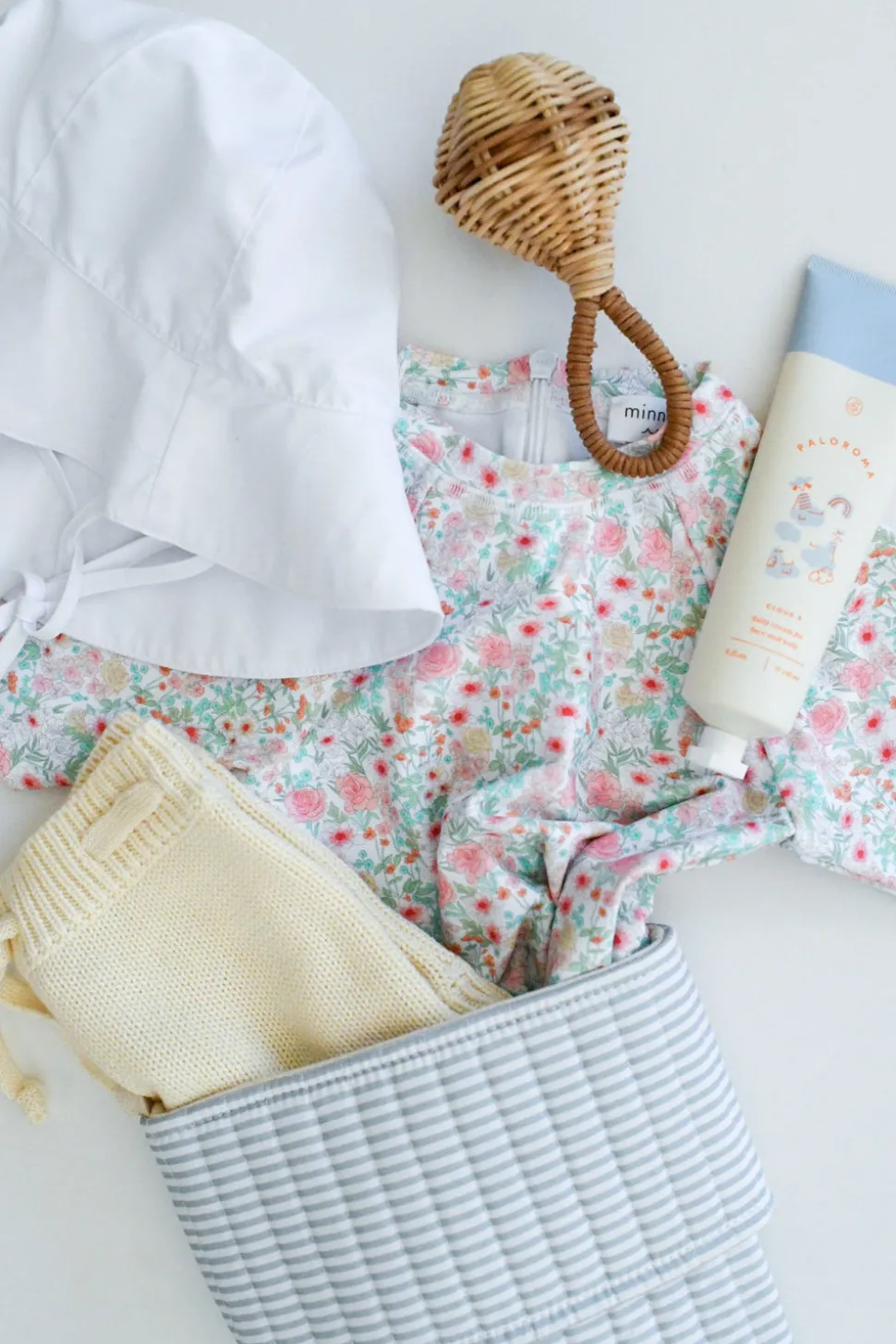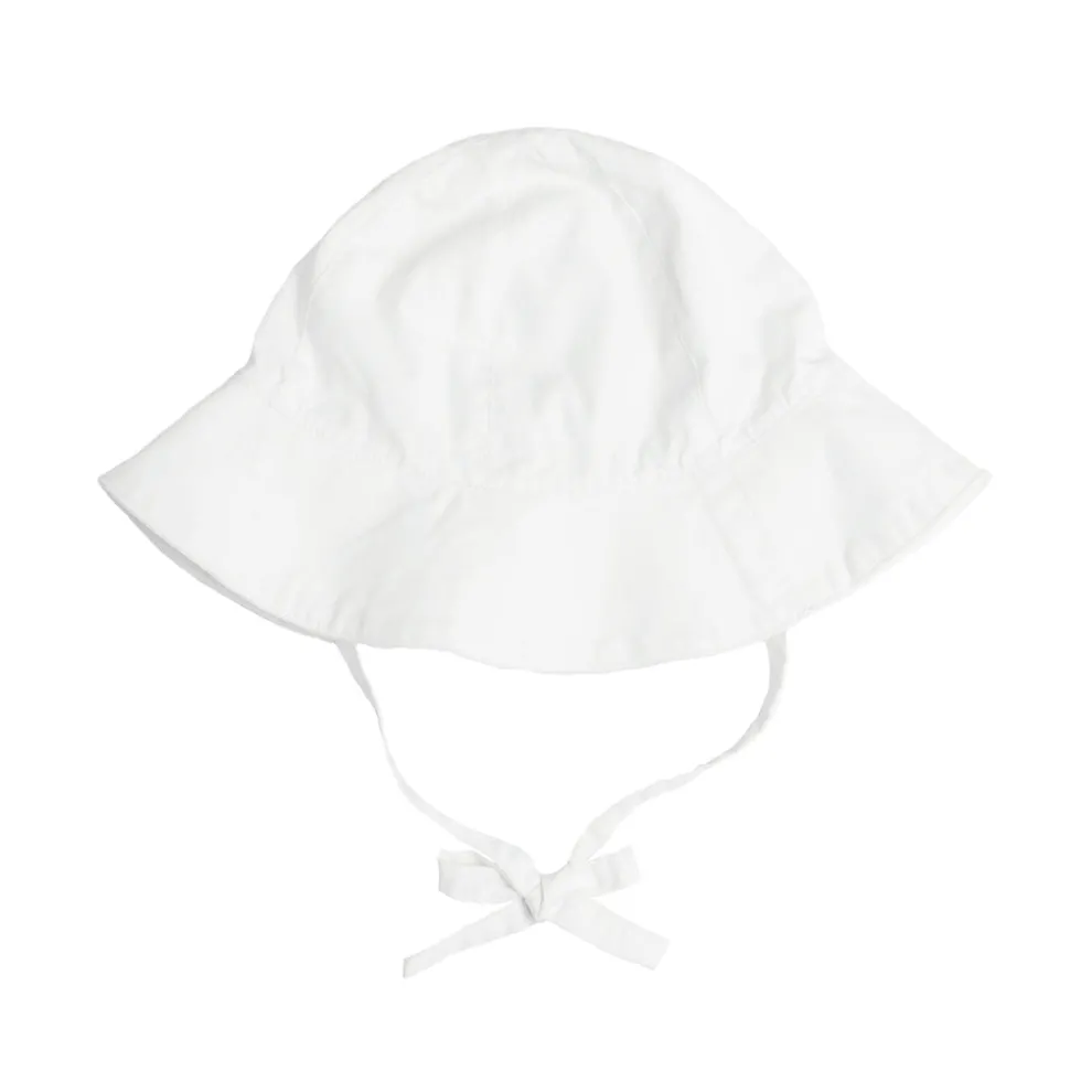 A family favorite for its clean lines and simple details, minnow creates pieces that are playful, polished, and thoughtfully designed for long days, sandy toes, and the wonderment of life on the shore. Everyone will love the look, and you’ll love the protection, of the White Sun Hat. Featuring a large brim for plenty of coverage, this sun hat is double-lined to make sure your baby is secure. Finished with ties to form the cutest bow, it comes in a lovely shade of white to pair with minnow suits.