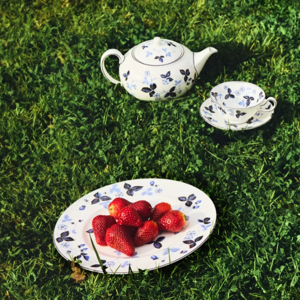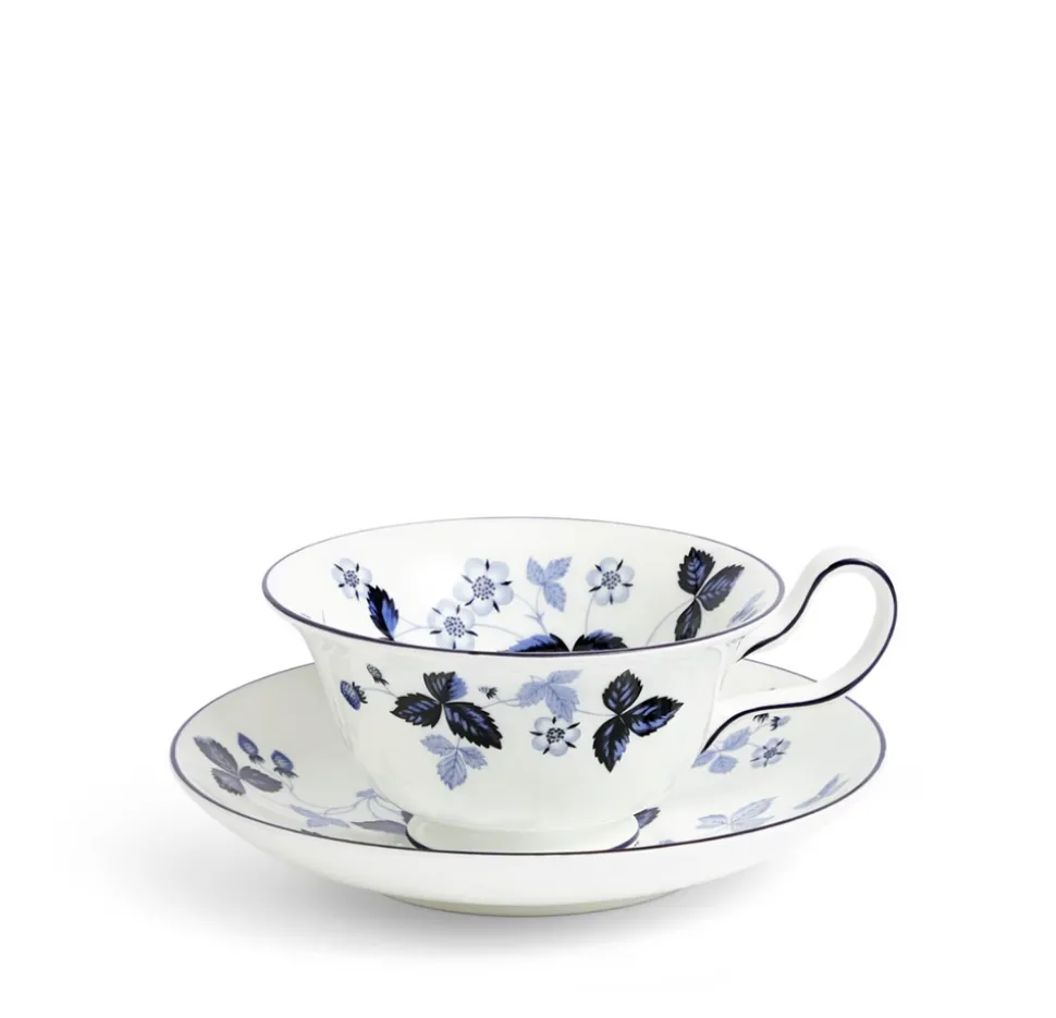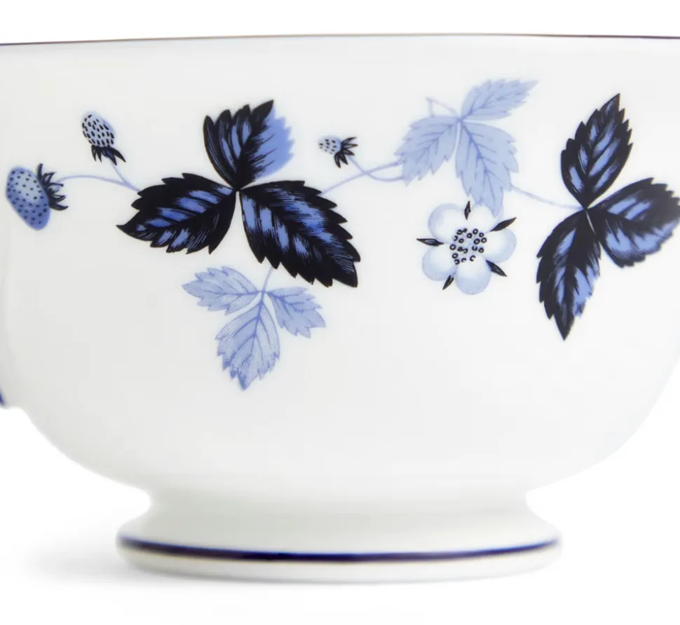 For over 260 years, Wedgwood has produced timeless, eclectic stoneware and china that has graced the tabletops of kings, queens, and some of the finest dining rooms in the world. From its factory in Barlaston, England, the brand’s signature dishware and household items are thrown, modeled and decorated by artisans who spend a lifetime mastering their craft. The Wild Strawberry Inky Blue Teacup Saucer set is a contemporary reimagining of what has been a staple at tea tables since its inception. The intricate hand-drawn vines and strawberries, now rendered in a commanding inky blue, stand out against the pristine white of the fine bone china.
