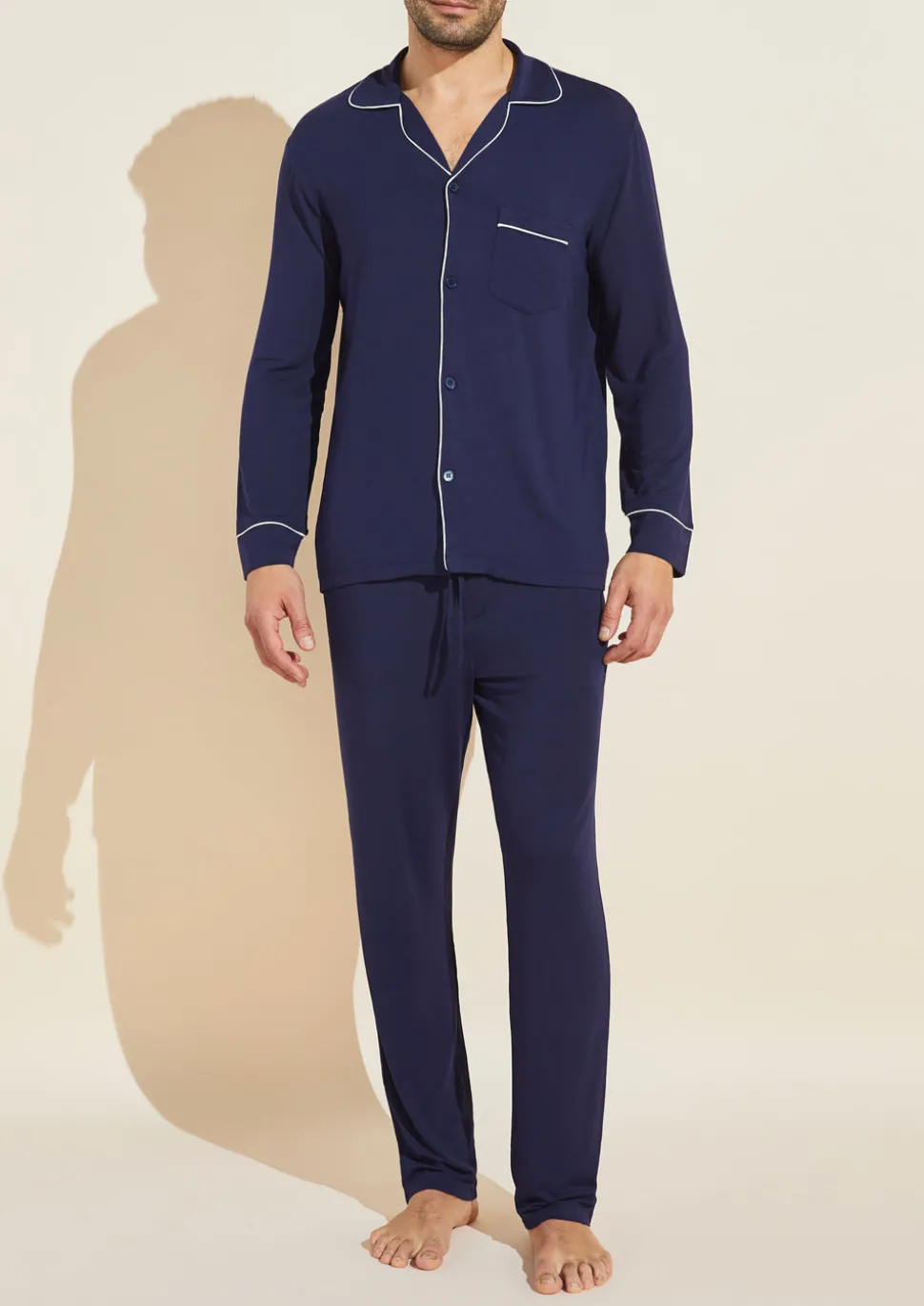 In 1996, Eberjey co-founders Ali and Mariela understood the visceral desire for beautiful, functional sleepwear that supported sleep and individual style. At last, pajamas can be sensual, comfortable, tailored, and effortless. For a good night sleep, every night: the relaxing William TENCEL™ Modal Long PJ Set in True Navy/Ivory is cut from luxuriously soft and sustainable TENCEL Modal fabric.