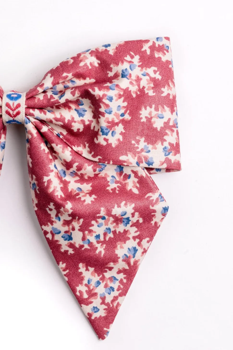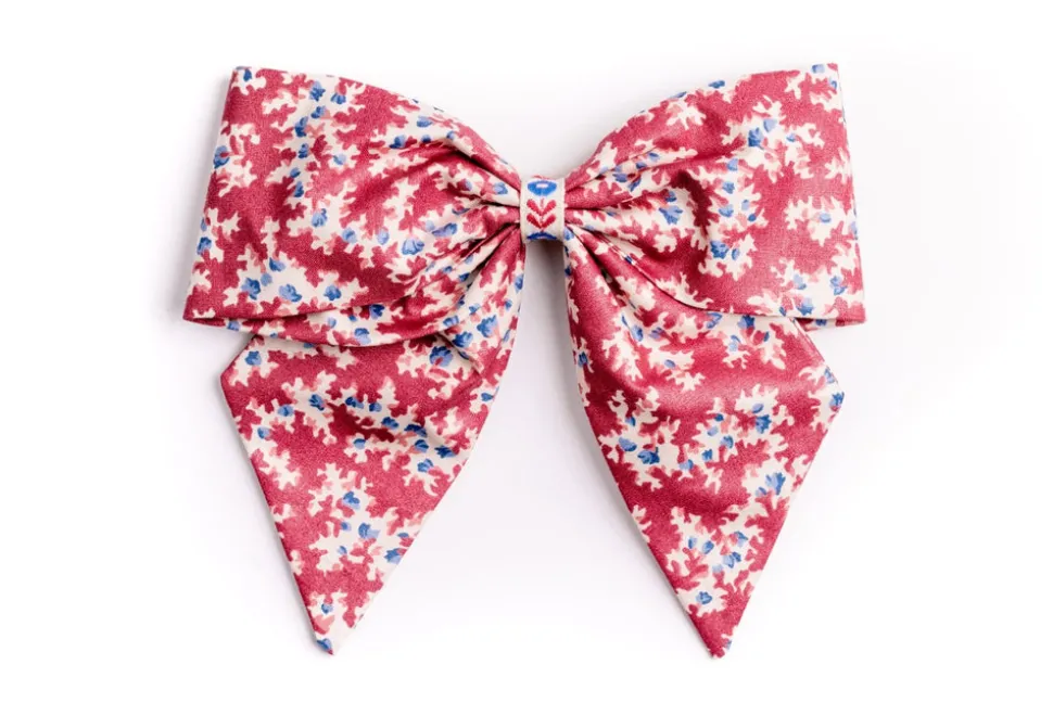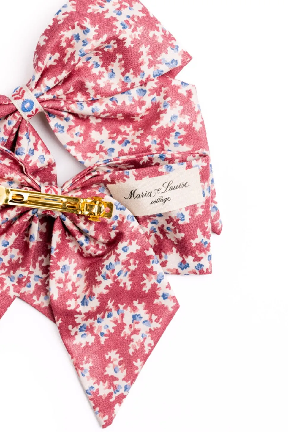 Maria Louise Cottage is a cozy haven steeped in history and charm. Once a humble milk room from the early 1900s, this space has been lovingly transformed into a workshop of creativity and craftsmanship. Every item here is meticulously handmade, infused with care and attention to detail. We use vintage fabrics, each carrying its own story, which means many of our creations are one-of-a-kind treasures available in limited quantities. The Willow Creek Bow in Red is made from vintage fabric. The fabric was also featured at “The Marvelous Mrs. Maisel” American TV series. The bow is mounted on a French barrette type of closure.