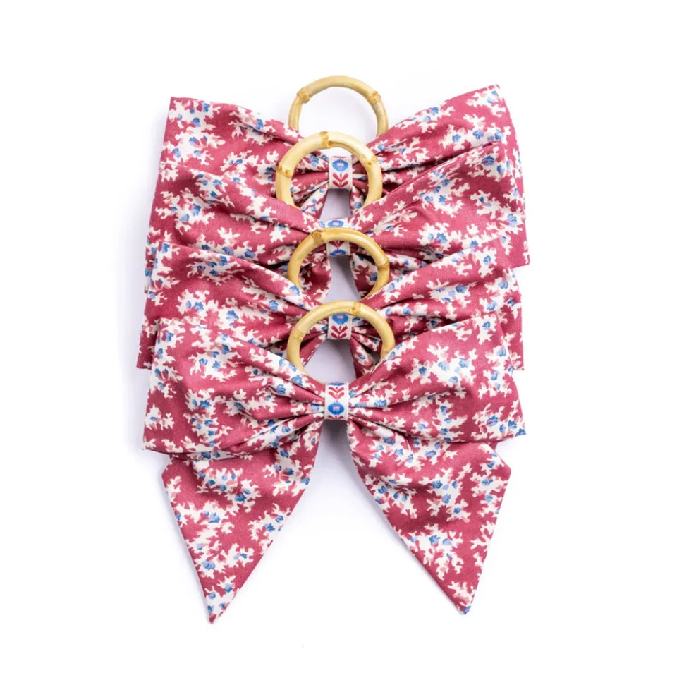Set of 4. 100% cotton. All of our napkin rings are attached to 2″ natural bamboo rings. Handmade in New England.