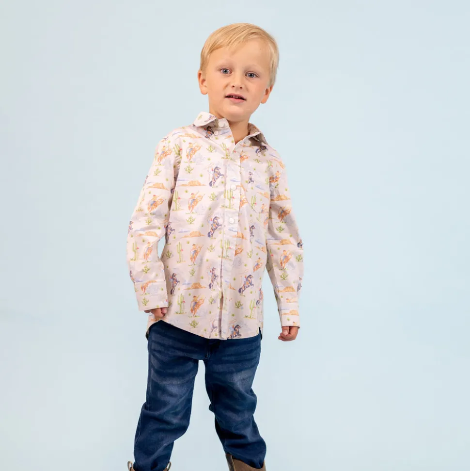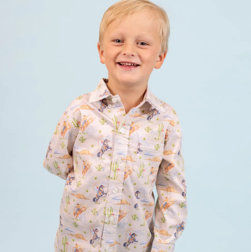 Inspired by the beauty of motherhood, Dondolo is a luxury lifestyle brand that provides beautiful, heirloom-quality clothing for generations to come. Each design is thoughtfully crafted in Colombia with ethical manufacturing, making every piece even more special. The Wilson Button Down in Rodeo brings Western-inspired charm to dressier moments, from family dinners to ranch weekends. Designed with comfort and refinement in mind, this polished shirt is made from breathable cotton and finished with a front chest pocket for a classic touch.