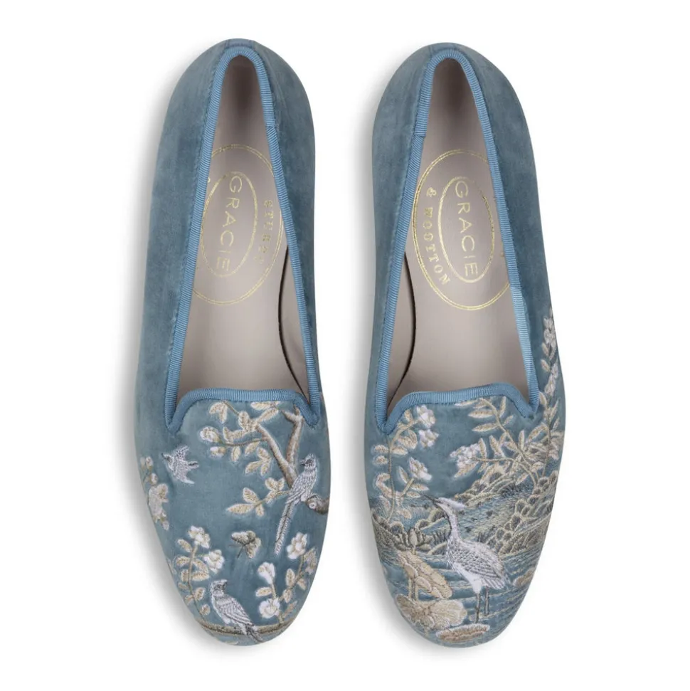 Founded in Palm Beach, Florida, Stubbs & Wootton has perfected the art of creating elevated, handmade women’s, men’s, and children’s shoes. Known for their exquisite needlepoint and embroidery, their slippers feature all-over patterns and intricate accents. The Winter Garden Sky Velvet Slipper is crafted from luxurious cotton velvet and finished with tonal silk cotton grosgrain. Its embroidery captures a detailed winter garden scene, with delicate blooms and foliage that bring a refined, seasonal charm to your wardrobe.