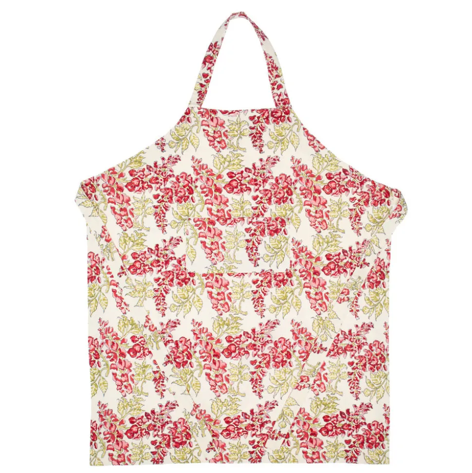 Idyllic landscapes, sumptuous colors, and the vibrant beauty of Southern France describes Couleur Nature. This brand of hand-painted table linens aims to bring a Provençal sense of effortlessness, rich culture, and joie de vivre to your life and home—no matter where you live. The Wisteria Apron in Green and Pink features olive green vines with delicate, pendant-like blooms. With an ivory background and cascading red and pink-tinged flowers, this apron is quality-constructed, chic and practical.