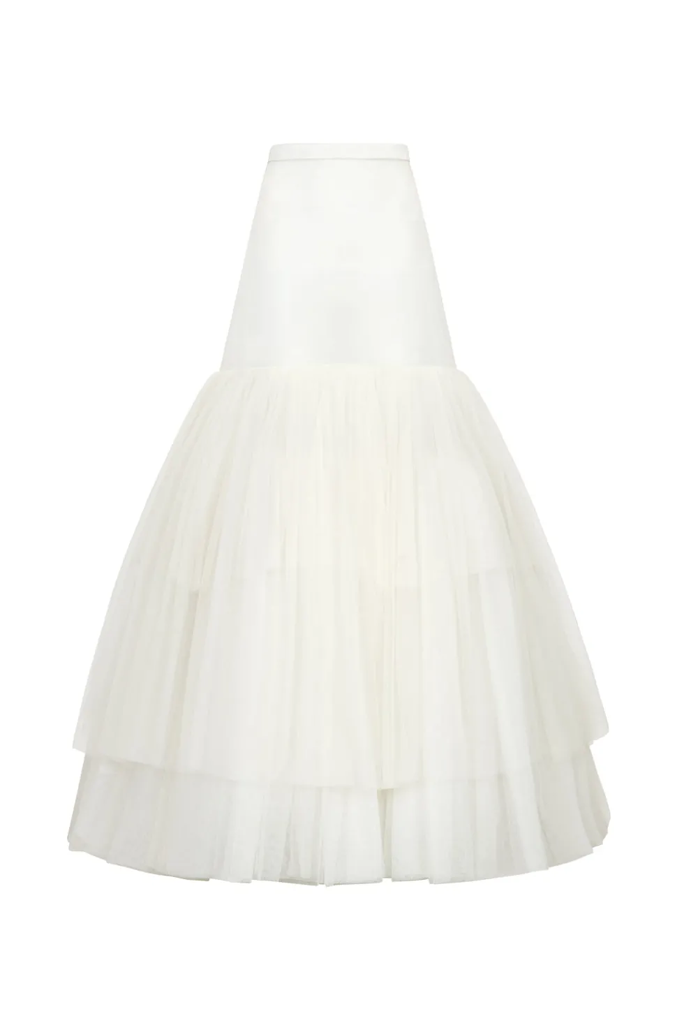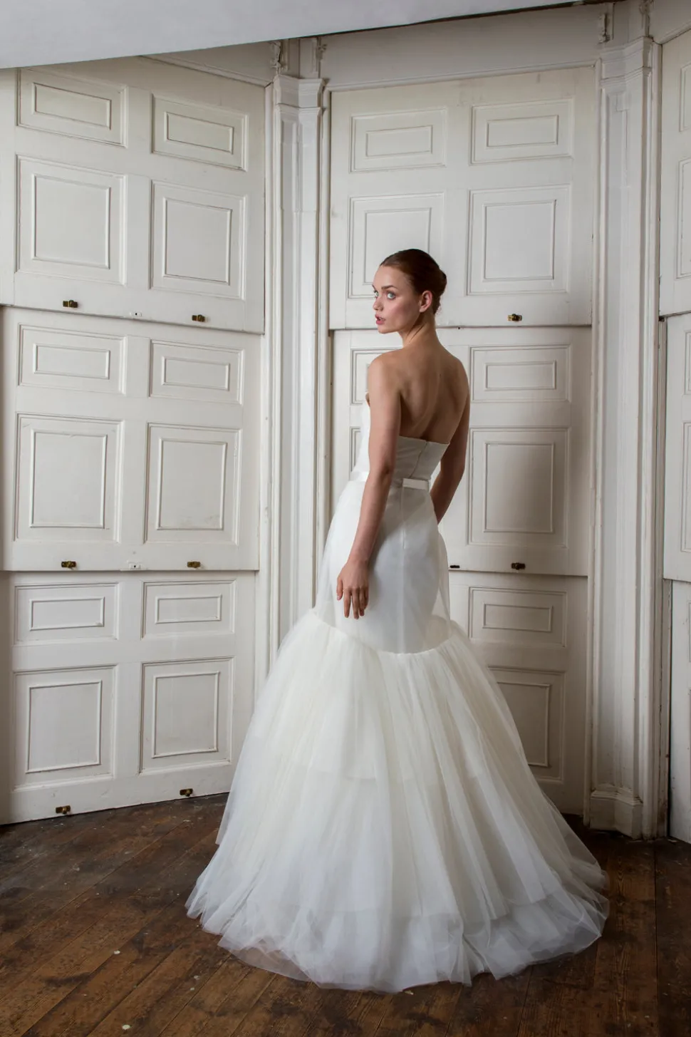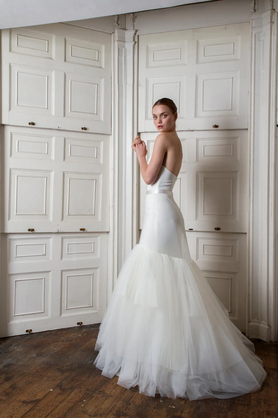 Luxury bridalwear brand Halfpenny London weaves Brit cool with a luxe sensibility, creating innovative, chic dresses and separates for the modern woman. The Woburn Skirt features a trumpeted silhouette with layered tulle and sheer top panel for an unforgettable bridal separate.