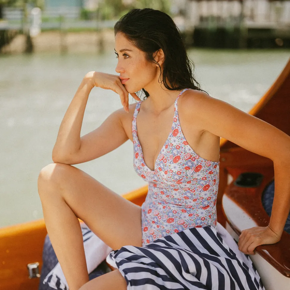 A family favorite for its clean lines and simple details, minnow creates pieces that are playful, polished, and thoughtfully designed for long days, sandy toes, and the wonderment of life on the shore. From the limited-edition Minnow x Over the Moon collection, the Women’s Americana Blossom V-Neck One Piece is crafted from luxurious recycled Italian swim fabric. Designed for a flattering and supportive fit, it features a deep v-neckline, removable pads, adjustable straps, and a high leg opening with full coverage.