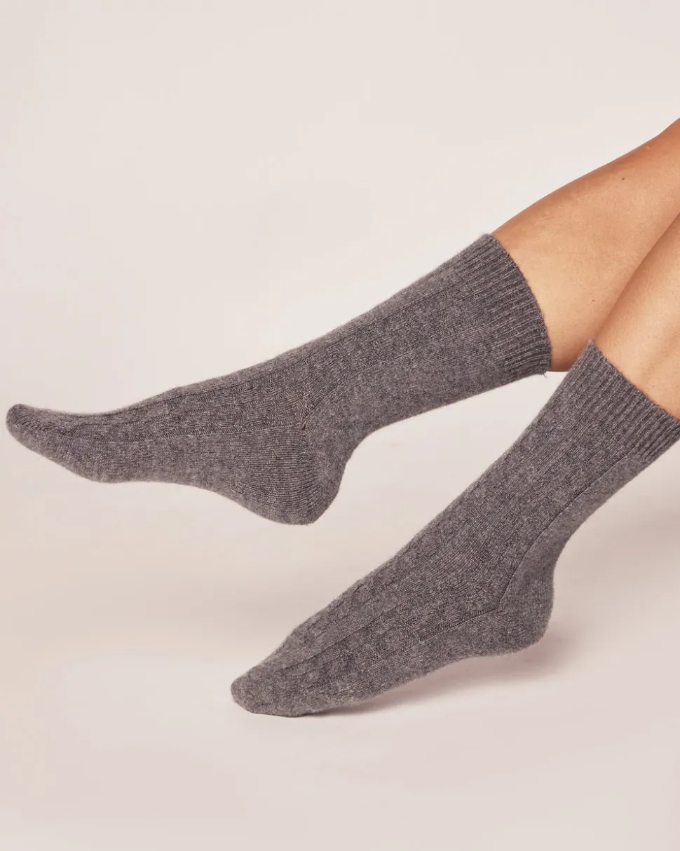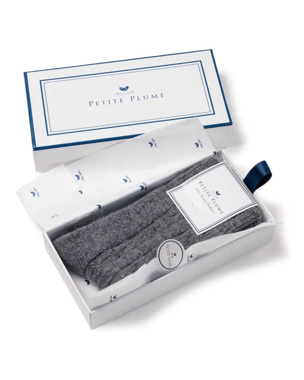 Petite Plume wishes you a “bonne nuit,” and in their luxury sleepwear, it’s hard not to oblige. Crafted in exquisite cotton, with the finest attention to detail, Petite Plume delivers the utmost comfort and sophistication. Made from Grade A 100% pure cashmere, the Women’s Cashmere Socks in Dark Grey envelop your feet in pure warmth and softness. The plush texture and exceptional craftsmanship make these socks a true treat all year round. A timeless accessory that is so good, you’ll never want to take them off. Gift box included.