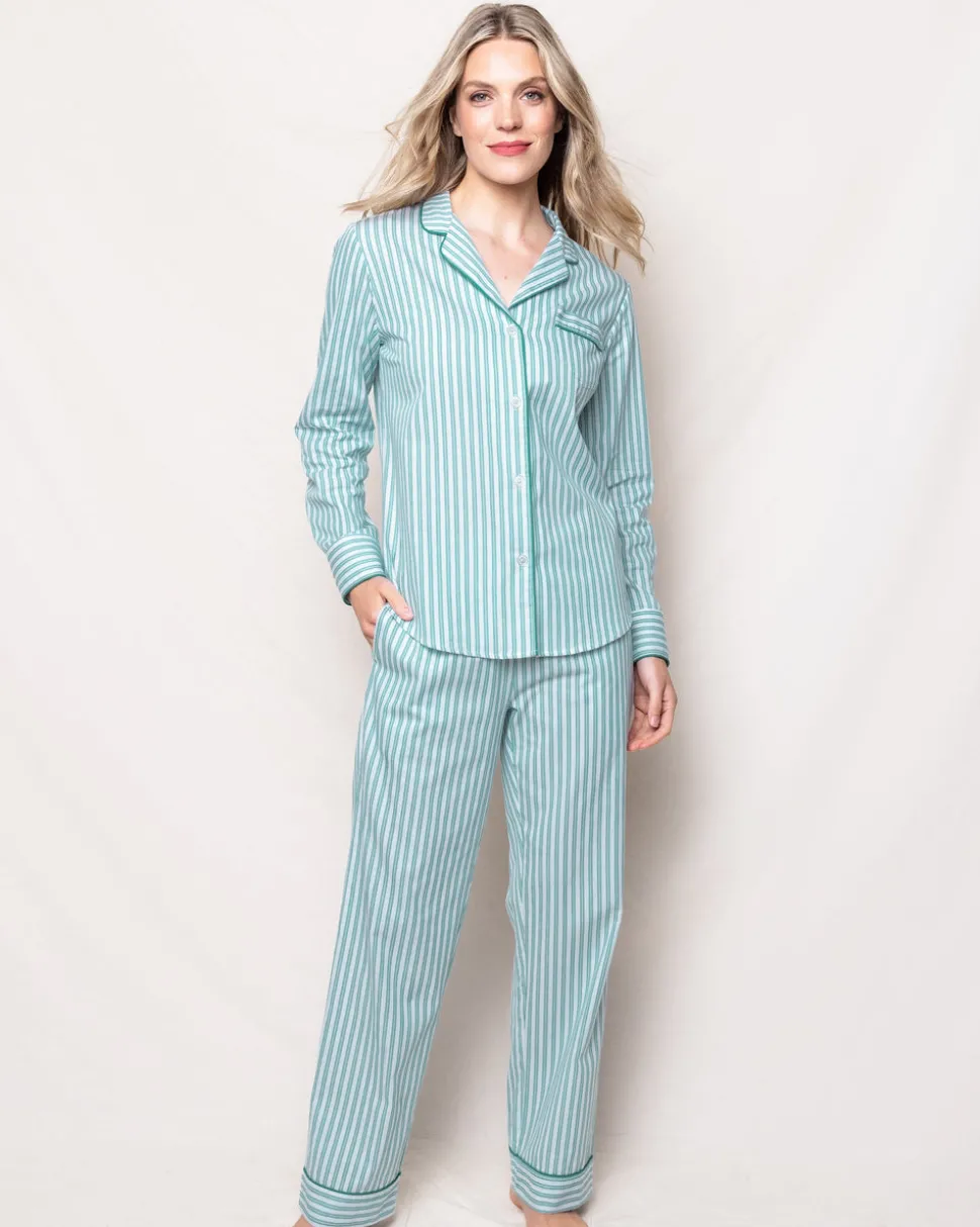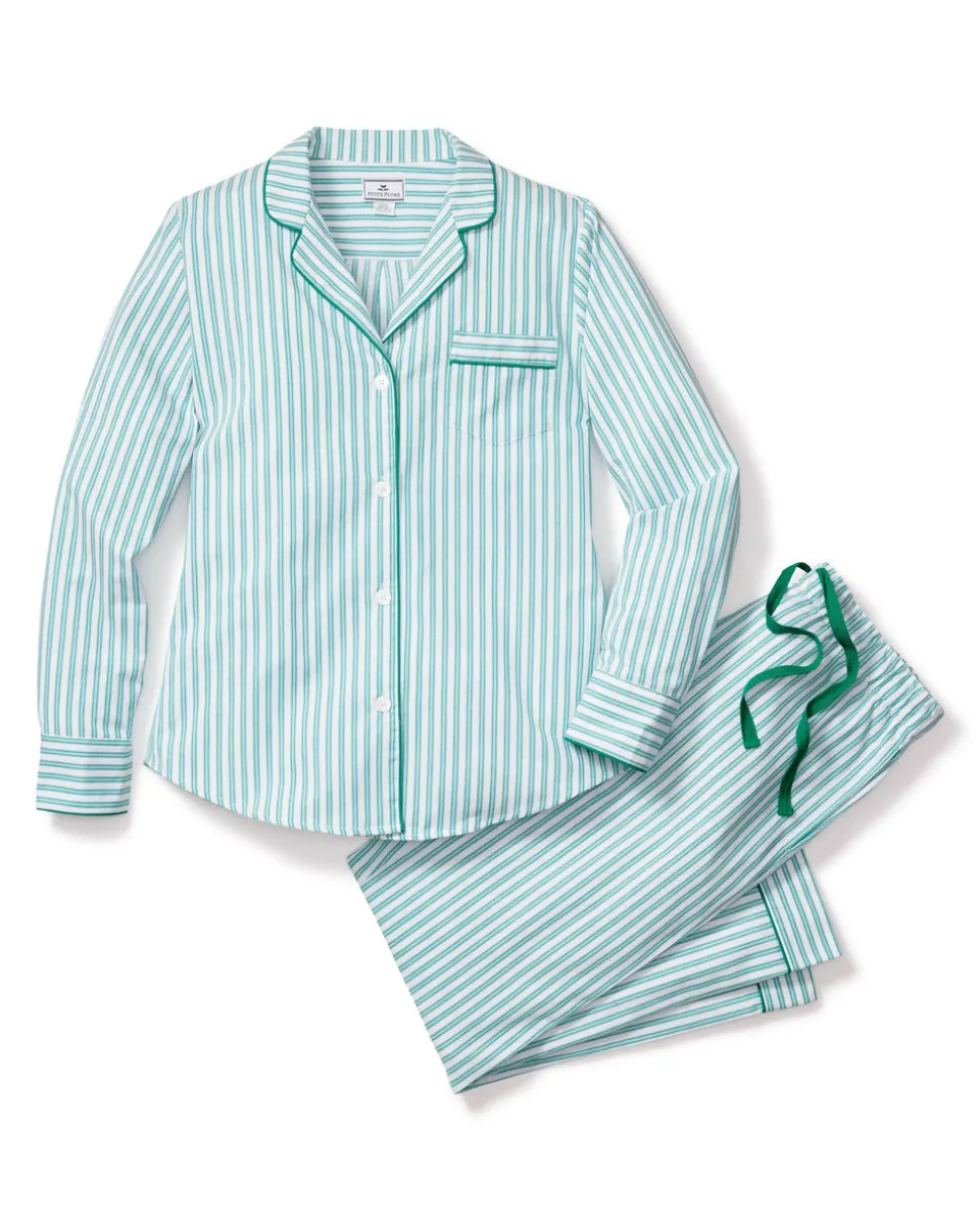 Petite Plume wishes you a “bonne nuit,” and in their luxury sleepwear, it’s hard not to oblige. Crafted in exquisite cotton, with the finest attention to detail, Petite Plume delivers the utmost comfort and sophistication. Accented with contrast piping and finished with a cute print, the lightweight Women’s Emerald Ticking Pajama Set features specially brushed cotton so that every wash brings more coziness and better sleep.